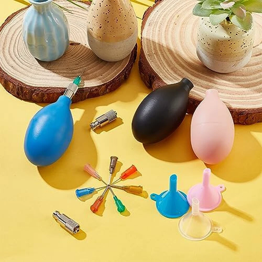 3 Sets of Ceramic Tools Pottery Supplies Clay Tool Set for Pottery Glaze8642 Practical Set: You will get 3 precision tip bottles, 3 funnels, 48 needles - screw bases in 8 sizes from 14 to 24, 3 metal connectors, worthy of your hobby work, for ceramic lovers. Bulb Squeeze Ball: Made of rubber, more precise application, soft and , easy to control and operate, can easily apply smooth glaze, make your glazing process easier and smoother. Precision Applicator Needles: Equipped with 48 needles of different colors and sizes, each size has 6 pieces to meet your painting needs, olive green (14G), amber (15G), gray (16G), khaki (17G) , Green (18G), Pink (20G), Blue (22), Red (24G) Easy to Paste: Can be used for other thin liquids, equipped with a small funnel, make your filling and cleaning faster and more convenient, save your time and make the whole process easier. More Applications: You can DIY many beautiful artistic ceramic glazing or painting, which can be used to decorate ceramic themes, such as porcelain, unfired pottery, earthenware, earthenware, pottery, vases and other items with smooth raw materials. Material: Metal colour: As shown Package Contents: 3 x precision tip bottles 3 x funnels 48 x needles (olive green 14G, amber 15G, gray 16G, khaki 17G, green 18G, pink 20G, blue 22, red 24G, 6 each) 3 x metal connectors