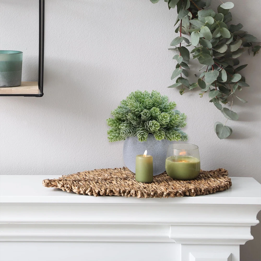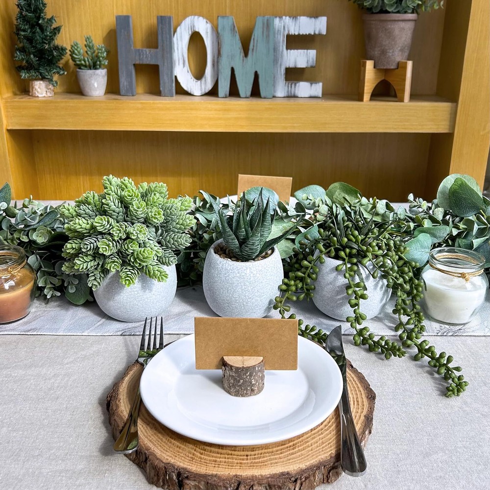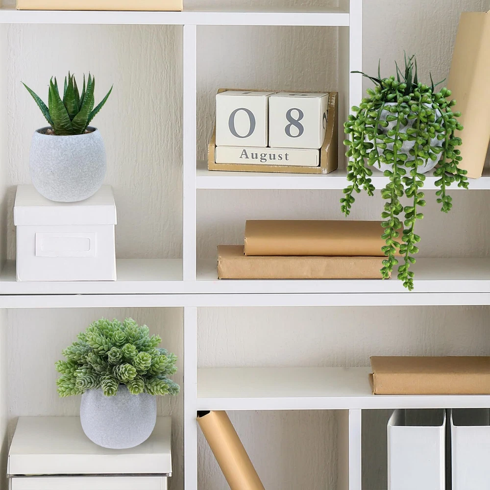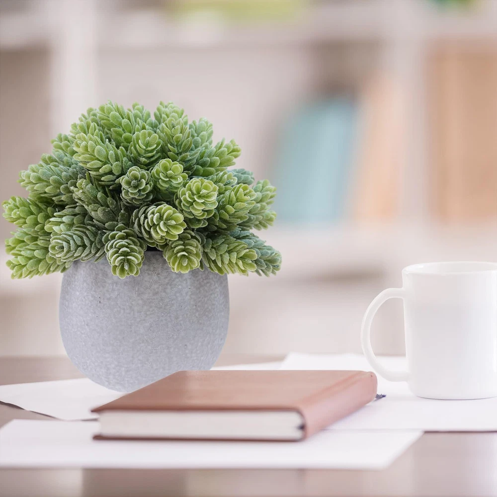 Set of 3 Small Artificial Potted Succulent Plants is a Great Choice for Adding Character to any Space: - Faux potted succulent plants are perfect display for narrow window ledges, counter, sink, dining table, coffee table, entryway table, end table, office desk, kitchen cabinet, shelves, mantel, countertop, nightstand, living room, bedroom, bathroom, balcony, patio. - These faux potted plants perfectly fit into any place in your home, apartment, studio, office, and garden. - These small plants decor are easily integrated with the surrounding environment. They are easier to move around, adding visual interest. - Place on your tiered tray, wodd box or other container with these small artificial succulent potted plants for charming farmhouse-inspired tabletop dispaly. - Use them as place cards. You can place the name cards directly in the pots among the leaves, or attach the tags written with guests' names to the planters. - These fake succulent plants are also available as a hanging plant. Hang them up with macrame plant hangers to elevate your decor and comfort a drab corner of a room. Long-lasting and Beautiful Gift: These artificial succulent plants in ceramic pots can also be used as a great gift. Perfect for housewarming gift, hostess gift, birthday gift as well as presents for occasions such as Mother's Day, wedding, baby shower, Christmas and holidays. Also great as party favors for guests, especially those green-thumb-challenged friend. Trio Faux Succulent Plant Set: Package includes 3 artificial potted succulent plants, featuring an incredibly realistic faux aloe plant, a hops plant, and a string of pearls plant. They are planted separately in 3 round concrete ceramic pots for your convenience and display. At the base of the succulent plants are natural-looking pebbles that complement the pots so well! They look great and will bringing a fresh and natural atmosphere to any space. Nice Green Shades: Assorted artificial potted succulents showcase a dark green aloe plant, a trailing green teardrop shaped string of pearls plant, and flocked green sedum hop blossoms plant, secured in gray round ceramic pots with white finish. They feature nice green shades and realistic textures, create a lifelike look and feel. Simple yet very elegant, they can blend well with any decor, perfect for adding a simplistic aesthetic to your settings. Perfect Size: The total height of this set of faux potted succulent plant measures about is about 4.1"-11.4" and a width of 5.5"-6.7". Each concrete pot measures about 3" tall. Arrange them all together or separately throughout your small spaces or bare nooks for a vibrant display. These lifelike potted succulents fit perfectly on your office desk, coffee table, floating shelf, cabinet, window ledge, or wherever you would like to add a dash of green! Durable & Minimal Maintenance: Artificial succulent plants are made of plastic and look lifelike in color and texture. These fake plants are nestled in concrete ceramic pots with decorative pebbles. There are padded pads on the bottom of each pot to prevent scratching your furniture. These faux potted succulents are meticulously crafted to resemble the real deal, so you can enjoy the beauty of plant life without the need for water or sunlight. These natural-looking artificial succulent plants with gray planters look great, perfect for bedecking your coffee table, shelf, cabinet, windowsill, kitchen counter, office desk, dining room table or outdoor bbq table. They can be used for your baby showers, wedding, thank you, placecards, etc. These faux succulent potted plants even make a great gift for that green-thumb-challenged friend! They are also great for a housewarming, hostess gifts, sympathy gifts, birthday gifts and more.