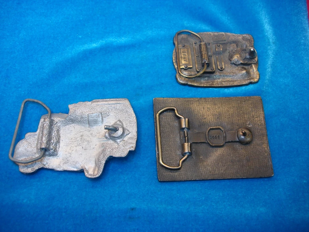 3 TRUCKING RELATED WESTERN STYLE BUCKLES 3 TRUCKING RELATED WESTERN STYLE BUCKLES Description ********* ALL THREE OF THESE BUCKLES HAVE SEEN USE BUT ARE STILL IN GOOD USABLE CONDITION. ALL THREE HAS 1 3/4" OPENINGS FOR YOUR BELT. BEING SOLD AS IS, NO RETURNS OR REFUNDS. BE SURE TO TAKE A LOOK AT THE PHOTOS. PLEASE NOTE : OUR PRICES ARE FIRM. THEY ARE THE LOWEST WE CAN SELL IT FOR. WE DO NOT ACCEPT OFFERS. IF YOU OFFER..YOU WILL BE BLOCKED Terms, Payment and Shipping Information We currently only ship to the United States and through eBay's Global Shipping Program. We will help with shipping and handling charges on multi-auction wins. Shipping is usually $1.00 per auction after the first, unless there are weight or size issues. You must ask for a combined invoice when you are done buying or bidding. Most folks figure the S/H charges into their total price. A careful eBayer who takes the time to study the photos, reads the entire description, and asks pertinent questions is our best customer. The digital images we display have the most accurate color possible. However, due to differences in electronic displays, we cannot be responsible for variations in color between the actual product and your display. We reserve the right to cancel any bid. Be sure to check out our other items: Listing and template services provided by inkFrog