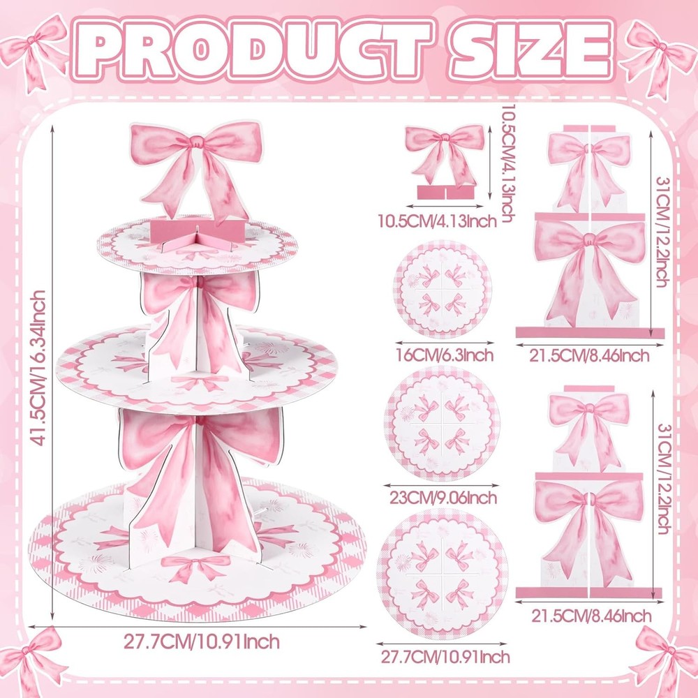 Free eBay listing template designed by dewiso.com 3 Tier Pink Bow Cake Stand Coquette Bow Party Birthday Cake Stand Decorations Pink Dessert Tower for Wedding Garden Birthday Party Supplies FREE AND FAST SHIPPING! About this item Packing List: you will receive a 3 tier coquette themed party cake stand, with a height of approximately 16.34 inches/ 41.5 cm, a maximum layer diameter of approximately 10.91 inches/ 27.7 cm, a middle layer diameter of approximately 9.06 inches/ 23 cm, and a minimum layer diameter of approximately 6.3 inches/ 16 cm; Whether you're showcasing cupcakes, cookies, or other desserts, the size of this cake stand is sufficient to meet your needs and help add a joyful atmosphere Reliable Quality: our pink bow cake stand is constructed from cardboard material, ensuring a stable and firm structure that will not easily sway or tip over; Its exquisite design adds an elegant style to your table, while the durability ensures it will last through continuous use Easy to Use: our pink bow paper cupcake stand is incredibly easy to set up; No additional tools are required; The smooth assembly process ensures that you have more time to prepare your decadent desserts instead of wrestling with complicated set-up procedures Designed for Reuse: unlike most cake stands, ours is designed for reuse; Simply disassemble it after your event, store it conveniently, and have it ready for your next festive celebration Wide Application: whether it's for birthday parties, weddings, anniversaries, or other special occasions, our cake stand serves as the addition to your decoration; Show off your delicious dessert in style with this eye-catching pink bow cake stand Product We offer a 30-Day Return Policy on items which you are not completely satisfied with. You have the option for a full-refund or an exchange of the item. No returns are available on items shipped outside of the US . Shipping We offer Free Shipping to the US and ship within 2 business days of payment, usually sooner. We use UPS express shipping. That's why your products are usually delivered within 3 days . Contact We try our very best to make sure every customer is completely satisfied. If there's a problem , message us! We're happy to help. 24/7 live chat available.