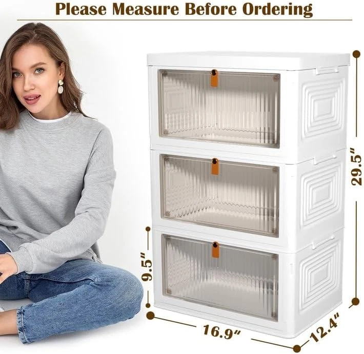 【105Qt Storage Boxes】With total volume of 105QT, the storage box measures 16.9in*12.6in*9.5in each tier.The Storage bins are good for sorting out crafts, photos, medicine, snacks, makeup product etc. Also handy as extra storage in the garage, classroom, closet, bedroom, bathroom, office, or pantry. Combining good looks and practicality On Nov 26, 2025 at 00:29:51 PST, seller added the following information: