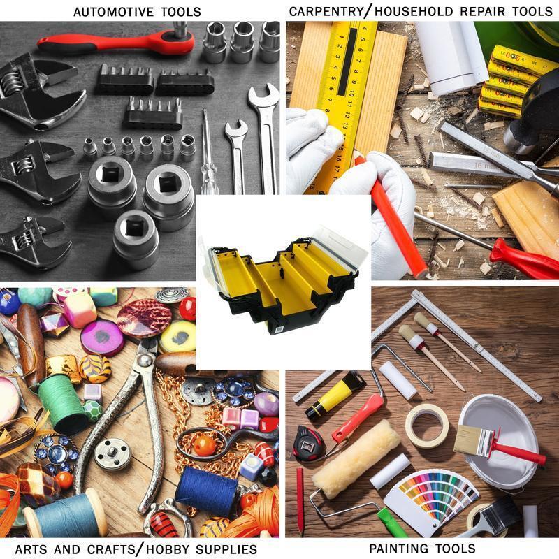 18 Piece Nonstick Cookware Set Dishwasher Safe Stay Cool Handles Easy Cleanup US 57.38 USD Free shipping Smoothie Blender 48oz Jar 12 Blending Functions Ice Crushing Quiet Design New 28.7 USD Free shipping 40-Piece White Ceramic Dinnerware Set Dishwasher Microwave Safe Everyday Use 116.99 USD Free shipping 16-Piece Dinnerware Set Service 4 Durable Stoneware Dishwasher Microwave Safe US 73.57 USD Free shipping Kids BBQ Grill Playset W/ Oven Cooking Sounds Accessories Pretend Play New 90.96 USD Free shipping Self Heating Mug 12oz W/ Charging Coaster Temperature Control Auto Shut-Off New 49.975 USD Free shipping Apple Pumpkin Scented Candle Large Jar Clean Burn Seasonal Aroma Home Decor New 10.4935 USD Free shipping Mid-Century Modern Floor Lamp W/ 2 Wood Shelves LED Bulb Included Indoor Use 65.29 USD Free shipping Realistic 2in Fishing Lure 1/4oz Soft Durable Body Holographic Flash 3pcs New 11.8885 USD Free shipping Lightweight Umbrella Stroller W/ Canopy 3-Point Harness Compact Fold Travel New 33.7125 USD Free shipping Bluetooth Bookshelf Speakers 160W Wireless Audio Remote Control RCA Inputs New 103.99 USD Free shipping 18 Piece Nonstick Cookware Set Easy Cleanup Stay Cool Handles Dishwasher Safe US 57.38 USD Free shipping The Portable Tool Box is the one spot toolbox organization solution you have been looking for. This plastic tool box opens to reveal five compartments over three levels for easy access, and it has a convenient handle for portability and center loops on the lids to add a lock or carabiner clip. The first level of trays has clear snap top lids that can be accessed without opening the entire box while the lower level features a large storage section that is perfect for holding bigger tools. 3-TIER PORTABLE TOOL BOX - This plastic tool box opens to reveal five compartments over three levels, including a large storage section that is perfect for bigger items. DURABLE - Constructed from rugged plastic, this portable tool holder is a long-lasting option for toolbox organization, and the tray distributes the weight evenly for stability. PORTABLE - With convenient carrying handles, this 18-inch large tool box is easily portable while supporting locks and carabiners to keep the organizer box's contents secure. MULTIPURPOSE - This multipurpose plastic tool box with handle is perfect for everything from hardware like nails, screws, and bolts, to fishing tackle, jewelry, and craft supplies. MATERIALS - PE Plastic And Steel. DIMENSIONS - (L) 18" x (W) 8. 25" x (H) 11. 8"; Top Tray: (L) 14. 8" x (W) 3. 5" x (H) 2"; Middle Tray: (L) 15. 9" x (W) 3. 5" x (H) 1. 8"; Base Bin: (L) 16. 2" x (W) 7. 9" x (H) 3. 7". COLOR - Yellow. You may also like 1.5” 7-Zone Pressure-relieving Memory Foam Mattress Topper Full Reversible 37.475 USD Free shipping Bluetooth Bookshelf Speakers 160W Wireless Audio Remote Control RCA Inputs New 103.99 USD Free shipping 16-Piece Dinnerware Set Service 4 Durable Stoneware Dishwasher Microwave Safe US 73.57 USD Free shipping Digital Security Box Electronic Keypad Safe Money Jewelry Passports Guns New 41.7875 USD Free shipping Toilet Brush & Holder Set Compact Design Efficient Cleaning BPA-Free Plastic New 10.8035 USD Free shipping Pineapple Chunks 100% Juice Canned Snack Non-GMO Rich in Vitamin C 106oz New 43.7375 USD Free shipping Max Gel Drain Clog Remover Thick Formula Fast Acting 80 oz Clog Eliminator New 14.6785 USD Free shipping 20 Inch 3 Speed Metal Pedestal Fan Oscillating Adjustable Height Air Circulator 140.4 USD Free shipping Twisted Nylon Reflective Anchor Line 100ft W/ Shackle UV Resistant 200lb Limit 43.6 USD Free shipping Folding Camp Chair W/ Cup Holder Portable Outdoor Seating Heavy Duty 225lbs New 15.4535 USD Free shipping Cushioned Foam Bathtub Mat W/ Suction Cups Machine Washable Antimicrobial New 24.74 USD Free shipping Smoothie Blender 650W 12 Speeds BPA-Free Jar Quiet Operation Ice Crushing New 28.7 USD Free shipping
