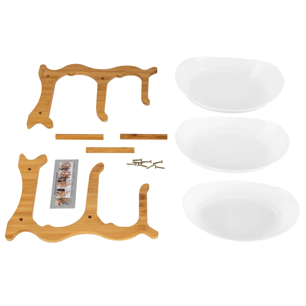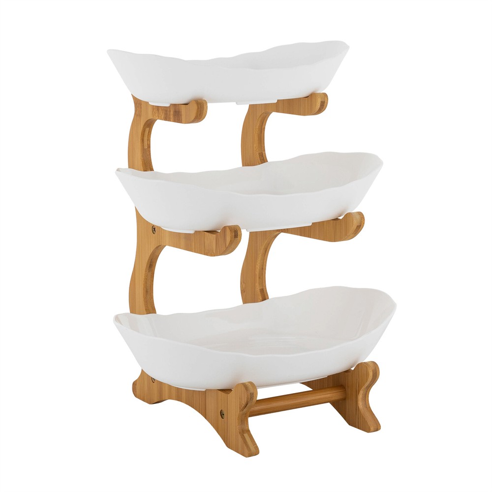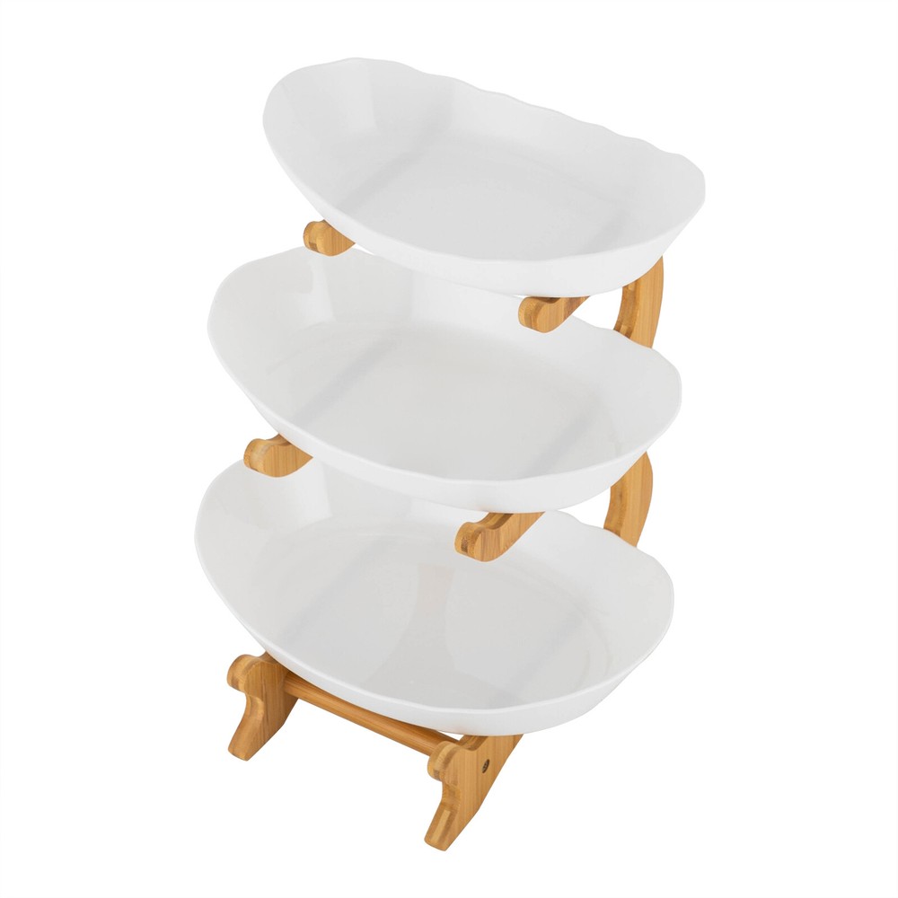3 Tier Serving Bowls with Tray Snack Dessert Cake Stand Fruit Bowl for Party Specification Material: Bamboo Wood, Food-grade PP Color: Wood, White Shape: Yuanbao Process: Polished, One-piece Molding Mount Type: Countertop, Tabletop Assembly Required: Yes Is Dishwasher Safe: No Number of Bowls:3 Number of Tiers: 3 Board Thickness: 12mm/0.47in Small Bowl Size: 24.6*15*5cm/9.69*5.9*2in Medium Bowl Size: 26*16.8*5.5cm/10.24*6.6*2.17in Large Bowl Size: 28*18.8*6cm/11*7.4*2.36in Overall Size: 22.5*14*32cm/8.86*5.51*12.6in Package Size: 25*16*34cm/9.84*6.3*13.38 Gross Weight: 2.5kg/5.51 lbs Package Included 1* Three-tier Fruit Bowl with Bamboo Wood Stand 1* English Installation Diagram All Accessories for Use Description In the pursuit of a natural and healthy modern life, we have carefully designed a three-tier food-grade PP fruit bowls with bamboo wood stand that blend traditional aesthetics with modern materials. It is not only a practical home accessory, but also a work of art on the dining table, adding a touch of freshness and peace of mind to your family gatherings or daily leisure time. Key Features Creative Yuanbao Shape: Yuanbao-shaped fruit plate with bamboo and wood shelves, is not only beautiful and unique but also sends good wishes for family prosperity, wealth, and prosperity, for family gatherings or holiday celebrations to add a festive atmosphere. Durable and Sturdy: The 12mm thickened bamboo wood rack is polished, so it is not easy to corrode and rust, while the fruit plate is molded from high-quality food-grade PP in one piece, which also ensures that it is not easy to deform in long-term use. Space Optimization: Compact stand size (8.86*5.51*12.6in) can reasonably utilize the space, while the fruit tray that can be separated and stackable for use is also convenient for you to store and achieve space optimization. Eco-friendly and Hygienic: Food grade PP material and eco-friendly bamboo wood frame are non-toxic and odorless , ensuring the safety and hygiene of the food placed. In addition, the open structure design is conducive to air circulation, reducing moisture accumulation and extending the freshness period of food. Scientific Tiering: Three different sizes of fruit plate layered design is convenient for different fruits or snacks classification, both beautiful and hygienic, avoiding the food between each other string flavor. Easy to Assemble: The simple structure and included clear assembly diagram allow you to complete the installation quickly. Worry-free Cleaning: The smooth surface and detachable design make daily cleaning simple and fast. You just need to gently wipe with a damp cloth. Customer Service: We aim to provide quality products and services. If you have any problems, please feel free to contact us. We will reply and solve the problem for you as soon as possible. Details Non-slip Base: It ensures that the fruit tray and stand are placed securely. Fine Texture: The natural texture on the stand handmade from bamboo wood is delicate to the touch and also brings a cozy natural atmosphere to your home. Smooth Edges: The smooth and burr-free edges enhance the beauty of the product and better care for your skin when installing and cleaning it. Application It is used to display fruits, candies, desserts, jewelry, food, and toys and is ideal for festivals, birthdays, parties, weddings, formal or informal gatherings, and more. It is also suitable for storing small items such as keys and headphones on your living room desktop or entryway table. Notes Please note that bamboo wood from natural materials, so there will inevitably be different textures, which is a normal phenomenon that will not affect the use. Please avoid exposing it to high temperatures. When cleaning, please do not rub it with wire or hard objects or immerse it in water for a long time. Please follow the diagram for installation. Please allow the slight color difference caused by the shooting light and 1-3cm error due to manual measurement and make sure you do not mind before ordering. Payment Delivery details Terms of sales About us Contact us Payment We accept ebay payment 。 Fees such as import duties, taxes are not included in the item price or shipping costs. These charges are the buyer's responsibility. Delivery details Shipping: 2-9 working days to: USA Terms of sales We maintain high standards of excellence and strive for hundred percent customer satisfaction. Feedback is very important to us. We hope that you contact us immediately before you give neutral or negative feedback, so that we can address your concerns. It is impossible to address issues if we do not know about them! About us Your satis faction is our ultimate goal. We work hard to earn your trust and future business. Our certified technicians have tested each item before shipping. The unit comes with 1 year limited warranty on all manufacturing defects. a) If you receive a defective item, you may return it or ask for a discount. Please contact us within 14 days after you receive the package. b) What you returned must be intact and in its original packaging as re? u. Customer is responsible for shipping costs of the returned item. c) We will cover the cost of shipping back t with the shipping rate indicated in the registration page. We will send you a new unit or refund the full payment you paid. Thank you. Contact us Business Hour Business Hour: Monday To Friday: 8:30 AM to 5:00 PM (Beijing China time) Due to time zones, our reply to your questions may not be immediately. But within above working time, we will reply your email within 24 hours. If it's non-workdays, please kindly be patient and wait till Monday. Please contact us with ebay message. Please feel free to contact us if you have any questions. Monday To Friday: 8:30 AM to 5:00 PM (Beijing China time) Due to time zones, our reply to your questions may not be immediately. But within above working time, we will reply your email within 24 hours. If it's non-workdays, plea