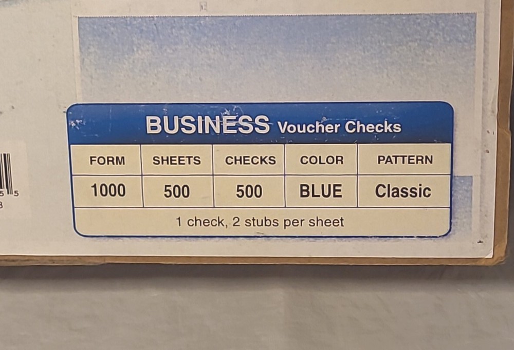 Size:1500Color:BlueCustom Bundle:NoUPC:Does Not ApplyBrand:VersaCheckCountry of Origin:United StatesModel:Business Voucher, Blue (500 Checks)Modified Item:NoCalifornia Prop 65 Warning:N/AMPN:Does not applygtin13:Does Not Apply