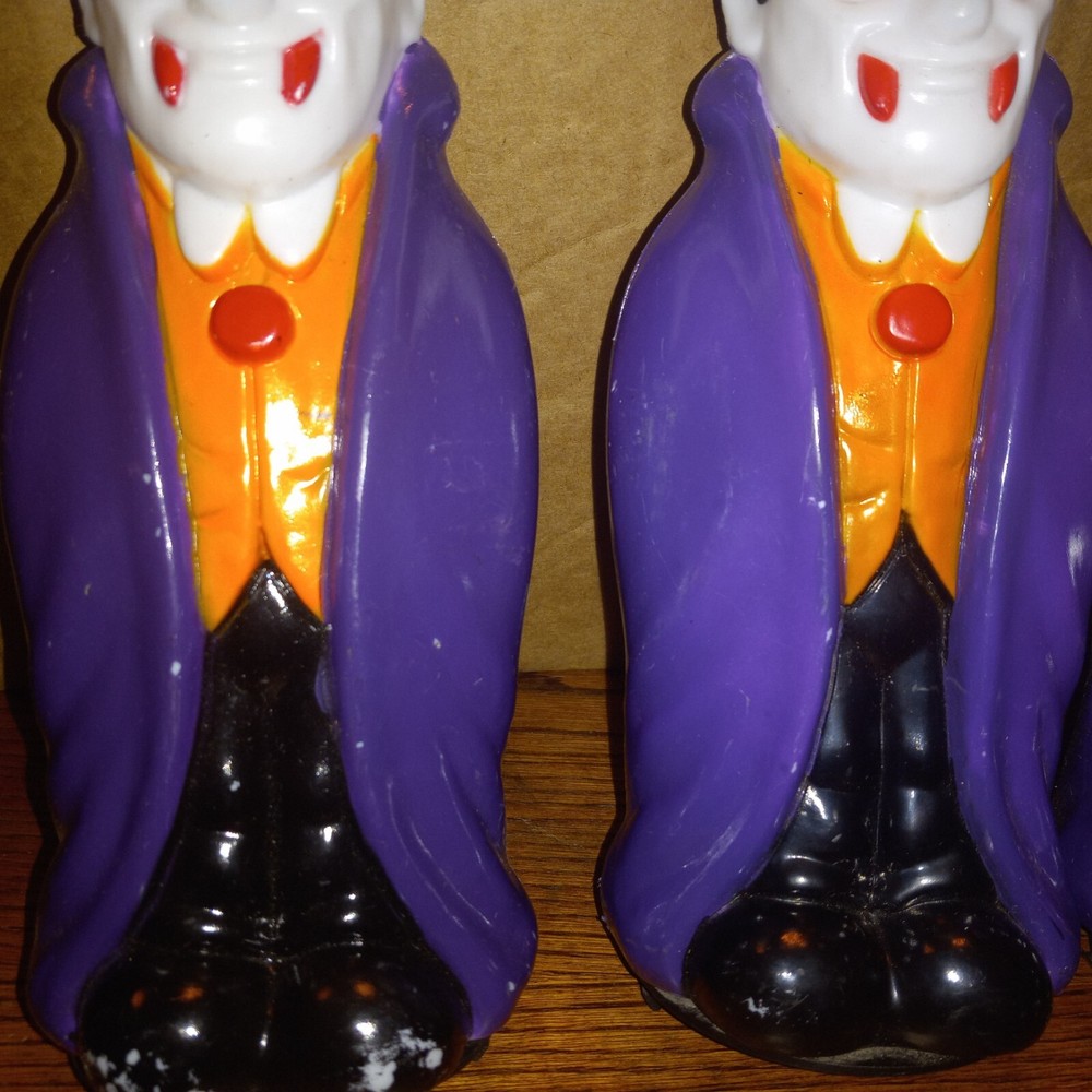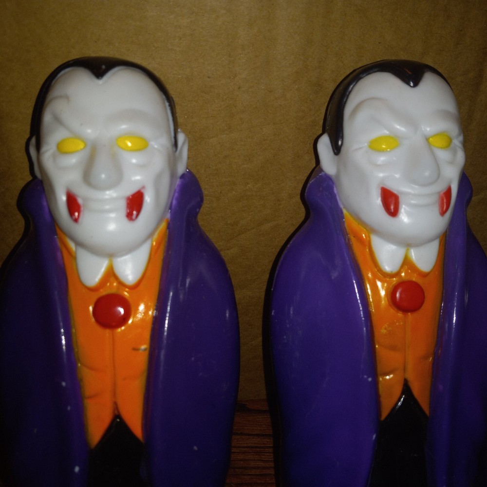 3 VTG 1990s Empire General Foam Dracula Vampire Blow Mold Pathway Light Topper Brand: Empire/General Foam Item: Blow Mold Pathway Light Topper Year: 1998 Measures Approx: 9" Colors: Multi-Colors Includes: 2- General Foam Dracula Vampires, 1 Empire Dracula Vampire Used Condition Has Some Marks On iT Some Paint Loss In Different Places On The Item (See Pictures)