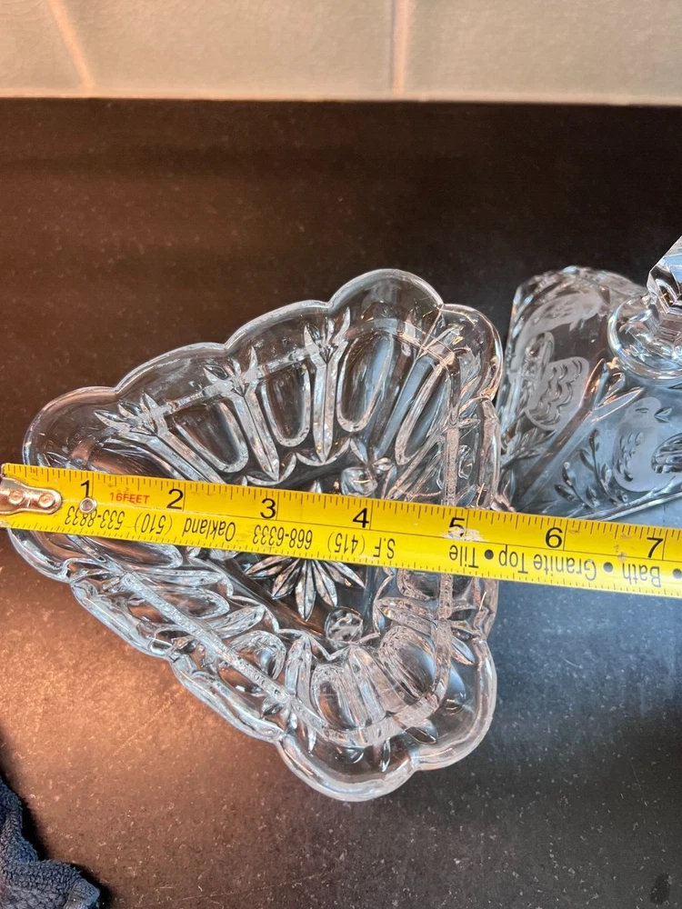 This charming set of three vintage candy, relish, and nut dishes showcases timeless elegance and intricate craftsmanship. Each piece is made of beautifully cut crystal, adding a touch of sophistication to any table or display. Round Lidded Candy Dish – A lovely 6" diameter heavy cut crystal dish featuring a classic starburst pattern. Weighs approximately 16 oz. Triangular Lidded Candy Dish – Measuring approximately 5", this sweet dish is adorned with a delicate etched bird pattern, adding character and charm. Weighs approximately 13 oz. Triangular Relish/Nut Dish – A versatile 5" dish with an eye-catching swirl and starburst pattern, perfect for serving small treats. Weighs approximately 12 oz. Each dish is a beautiful vintage find, perfect for collectors or those who appreciate timeless glassware. Please refer to photos for more detail. +++ 🔹 A Note on My Listings: I am not a historian or antique dealer, but I do my best to research and provide accurate information. Please review the details and conduct your own research if needed. I encourage you to ask any questions before purchasing—I’m happy to help! I strive to represent all items accurately, whether they come from my own home or another well-loved source. If you notice anything that seems incorrect or misrepresented, or if you have any concerns after receiving your item, please reach out directly —I’ll gladly assist in resolving any issues. ✨ Thanks for looking! Feel free to message me with any questions. ✨