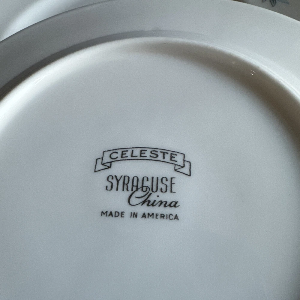 Add a touch of vintage elegance to your table setting with this beautiful three-piece set of Syracuse China CELESTE plates. The ivory blue color and intricate pattern make these round plates perfect for formal occasions or everyday use. The set includes a dessert plate and a bread plate, both featuring the stunning CELESTE design. Crafted from high-quality ceramic, these vintage plates are durable and easy to clean. The white blue color and formal style add a touch of sophistication to any table setting. These plates are perfect for serving bread and desserts and are sure to impress your guests. Add a touch of vintage charm to your dining experience with this stunning set of Syracuse China CELESTE plates.