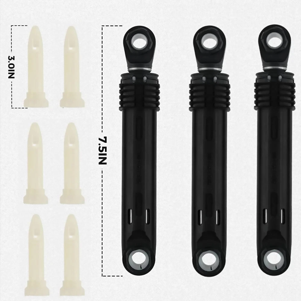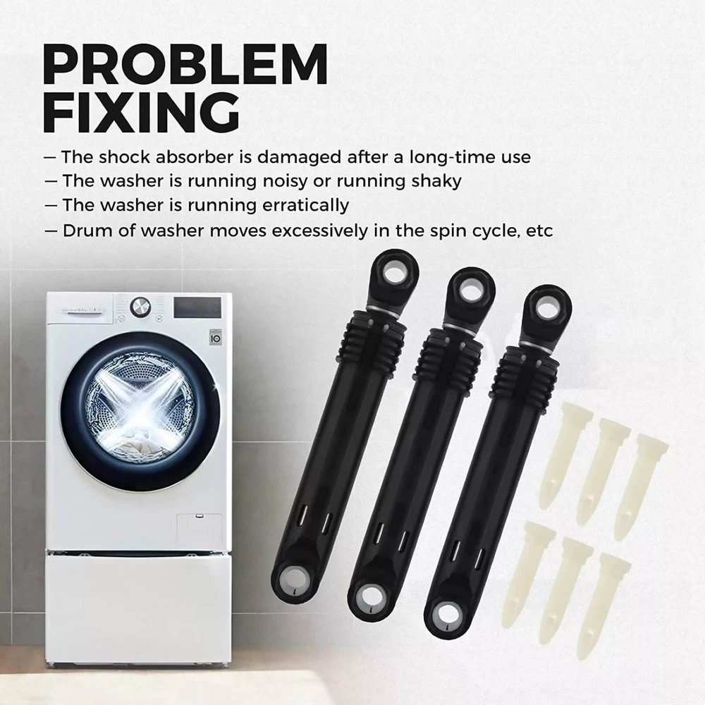 Product Description 3* Washing Machine Shock Absorber Damper Replacement Part For LG 383EER3001G Features: Easy installation and replacement: Designed with user convenience in mind, the shock absorber rod replacement parts feature standardized sizes and a simple installation structure, enabling home users to effortlessly complete the task without professional skills. This significantly shortens maintenance time and reduces installation difficulty. High durability: Crafted from high-strength, high-elasticity materials, the premium shock rod replacement parts withstand intense vibrations and long-term loads during washing machine operation, effectively prolonging the service life. This durability ensures a stable working condition for an extended period, minimizing inconvenience and costs associated with frequent replacements. Improved shock absorption: In comparison to aging or damaged shock rods, the new replacement parts excel at absorbing and dispersing vibrations and noise generated during washing machine operation. This safeguards internal components from damage while diminishing laundry-related noise, fostering a quieter, more comfortable living environment. Enhanced stability and safety: Maintaining the shock absorber rod's optimal condition is crucial for the washing machine's overall stability. Replacing worn-out shock rods significantly enhances the machine's balance, minimizes shaking and displacement, and prevents it from tipping or moving at high speeds. This, in turn, strengthens usage safety and safeguards the wellbeing of family members and the home environment. Specifications: OE Reference: 383EER3001G, ACV72909503, ACV72909501 Color: Black Quantity: 3pcs Replace: 383EER3001G, 383EER3001J, 4901ER2003A, 383EER3001F, 383EER3001H, 1461630, 383EER3001K, AH3522311, EA3522311, PS35222311, AP4437743, 1335104, AP5226074, PS3583320, Compatible: For LG Package Included: 3 x Washer Shock Absorbers 6 x Mounting Pins If you have any questions, please feel free to contact us via ebay. We usually respond within 24 hours. Payment Shipping Returns Contact Us We accept all verified payments from ebay. Orders will be shipped after receiving cleared payment. Payment due within 7 days after auction ends and for buy it now listings. We ship most of our orders within 24 hours, and may up to 48 hours for. If you want faster shipping way. Please contact us before making payment. Sometimes due to problems with our transportation company system, your shipping information may be delayed to update. We recommend that you try again after 3-4 days. If you still haven't checked the shipping information, you can contact us by ebay message. Always believe we can figure things out with communication, if it comes to return, the pacakge must be intact and the same as you receive. If you have any questions, please feel free to email our service specialists 24 Hours a Day, 7 Days a Week. We will reply you ASAP. Return/refund is accepted within 30 days after the buyer receives the item. NO exchange will be accepted after 30 days from the date when the item is received. Please contact us first before returning your product!!! If you have any questions, our Customer Service staffs welcome you to email us. We strive to answer all questions and resolve any problems as quickly as possible. You can contact us 7*24, we will reply at the first time, and we will surely solve your problems. Note: 1.We try our best to reply to your emails as soon as possible, however, due to high volume of daily incoming emails and time zone difference, we may not be able to reply your emails immediately. Please allow 1 business days for us to response. If you do not receive any reply from us, please check your email ensuring your mailbox has not reached full size. 2.Due to some ISP SPAM filter settings, you may not be able to receive our replies; if you have problems receiving our emails, you may need to use a different email account to contact us. 3.Please give us the opportunity to resolve any problem. We understand the concerns and frustrations you might have, and will try our best to resolve the issues. Please email us before leaving any negative feedback or open any dispute on PayPal. 4.We care about our valued customers, and will always try to help you. So if you have any problems, please e-mail us immediately. Payment We accept all verified payments from ebay. Orders will be shipped after receiving cleared payment. Payment due within 7 days after auction ends and for buy it now listings. Shipping We ship most of our orders within 24 hours, and may up to 48 hours for. If you want faster shipping way. Please contact us before making payment. Sometimes due to problems with our transportation company system, your shipping information may be delayed to update. We recommend that you try again after 3-4 days. If you still haven't checked the shipping information, you can contact us by ebay message. Returns Always believe we can figure things out with communication, if it comes to return, the pacakge must be intact and the same as you receive. If you have any questions, please feel free to email our service specialists 24 Hours a Day, 7 Days a Week. We will reply you ASAP. Return/refund is accepted within 30 days after the buyer receives the item. NO exchange will be accepted after 30 days from the date when the item is received. Please contact us first before returning your product!!! Contact Us If you have any questions, our Customer Service staffs welcome you to email us. We strive to answer all questions and resolve any problems as quickly as possible. You can contact us 7*24, we will reply at the first time, and we will surely solve your problems. Note: 1.We try our best to reply to your emails as soon as possible, however, due to high volume of daily incoming emails and time zone difference, we may not be able to reply your emails immediately. Please allow 1 business days for us to response. If you do not receive any reply from us, p