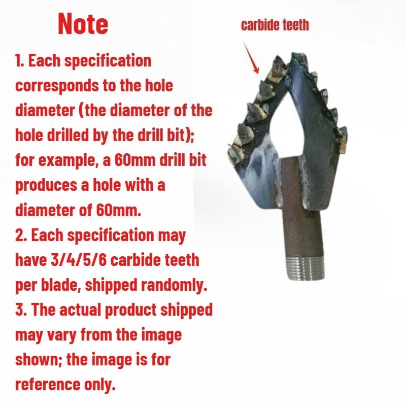 Product Description 3 Wing Well Drilling Super Hard Alloy Drill Bit/water Well Drilling Rig Drill Description: Triple wing alloy bit for small well drilling rigs with 1inch I.D. drilling rods and pipe clamps. The drill bit is suitable for hitting the soil layer, sand layer and limestone layer, can not hit the rock layer. Alloy head is relatively hard, do not to hard touch or hit the rock layer Package Included: It depends on your choice! Payment Policy Shipping Policy Returns Policy About us Payment Policy NOTE: Import duties, taxes and chargers are not included in the item price or shipping charges. These charges are the buyer's responsibility. Please check with y our country's customs o ffice to determine what these additional costs will be prior to bidding buying. Shipping Policy 1. We Ship to Worldwide. 2. Item are shipped from S henzhen using Airmail, reach most of the countries within 10 to 35. 3. Delivery time depends on destination and other factors, it may takes up to 40 business days. 4. We are not responsible for undeli verable address, we reserve the right to charge the shipping fee again for returned items due to wrong address. Returns Policy 1. All Returned items Must Be in the original packaging and you MUST PROVIDE us with the shipping tracking number, specific reason for the return,and your ebay ID. 2. We will refund YOUR FULL WINNING BID AMOUNT, upon receipt of the item in its original condition and packaging with all components and acc essories included, AFTER BOTH Buyer and Seller cancel the transaction form ebay. OR, you may choose to have a replacement. 3. Return shipping is to be bear by the Buyer. About us 1. We greatly appreciate your POSITIVE feedback. Please do NOT leave negative feedback without asking for help. Our aim is to provide Top Level Customer Service, normally so we will try our best to solve any problem you have. 2. Please DON'T leave negative or neutral feed back if you haven't received item in 30 days, because we have mentioned the shipping time repeatedly. Copyright © 2023 Dianxiaomi
