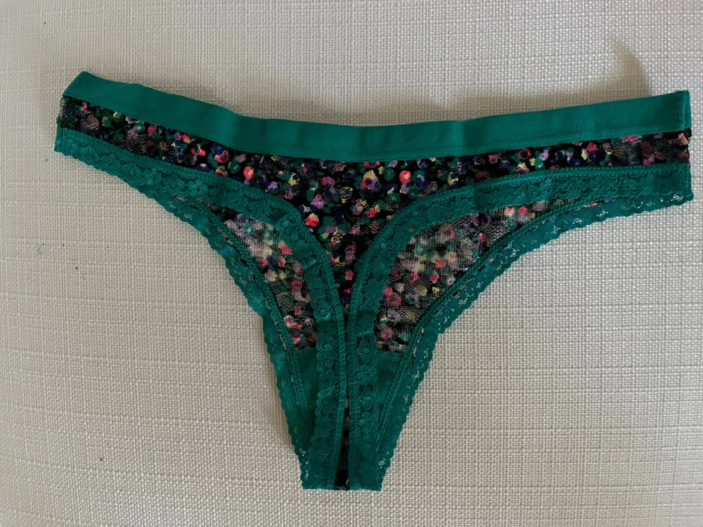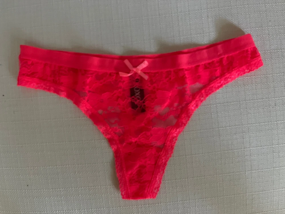 These are 3 NEW LACE THONG PANTIES by XOXO INTIMATES 3PK Collection. one Pink , one Black, and one multicolor , with Fused Logo Waistbands, in Soft Lightweight Silky Fabric. Labels read 90% Polyester, 10% Spandex, SIZE S, Mfg List Price $24. One is pink One is black One is multicolor