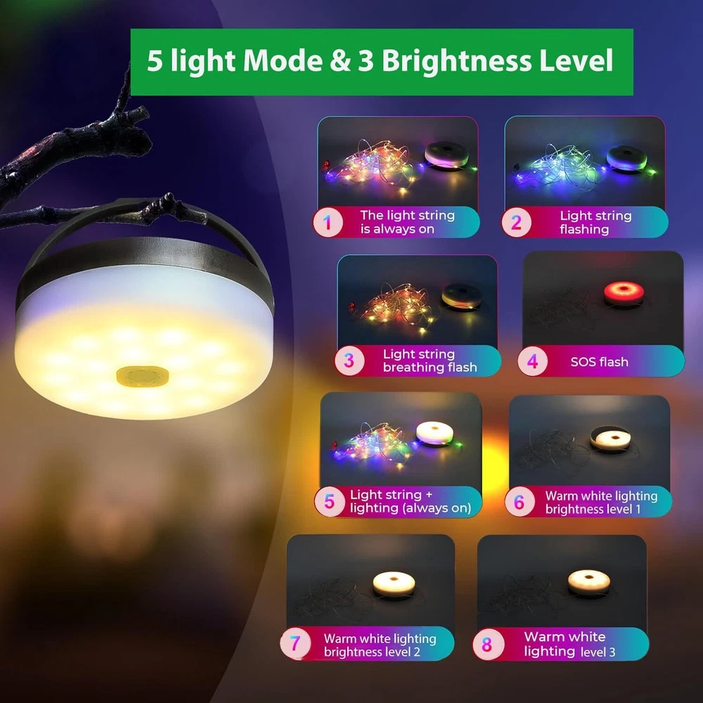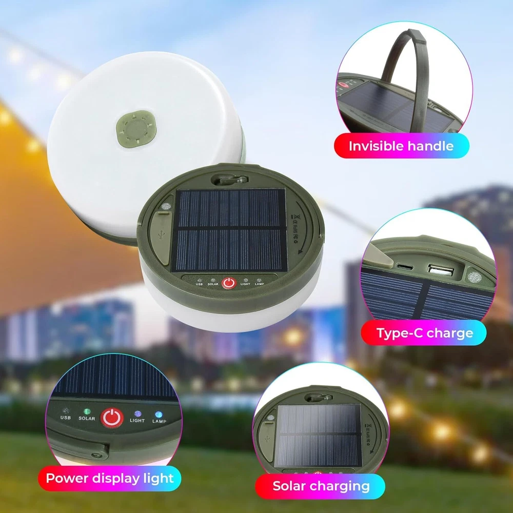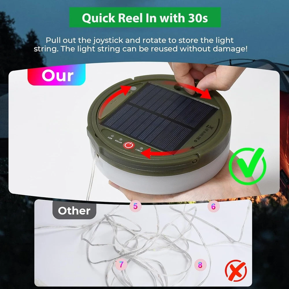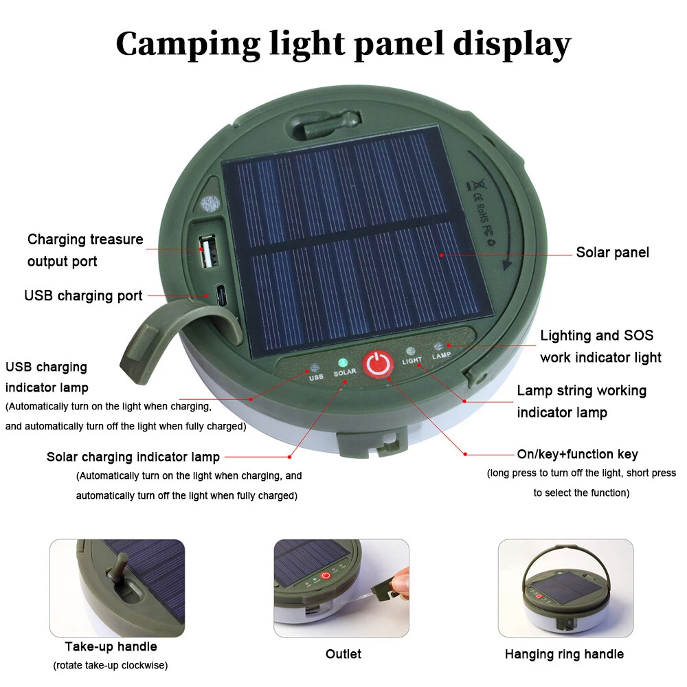 3 in 1 Solar/USB Camping String Lights Rechargeable Outdoor Waterproof Tent Lamp
