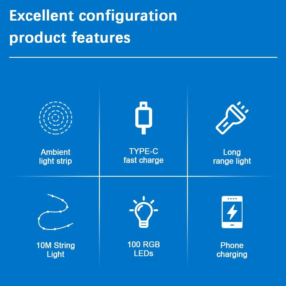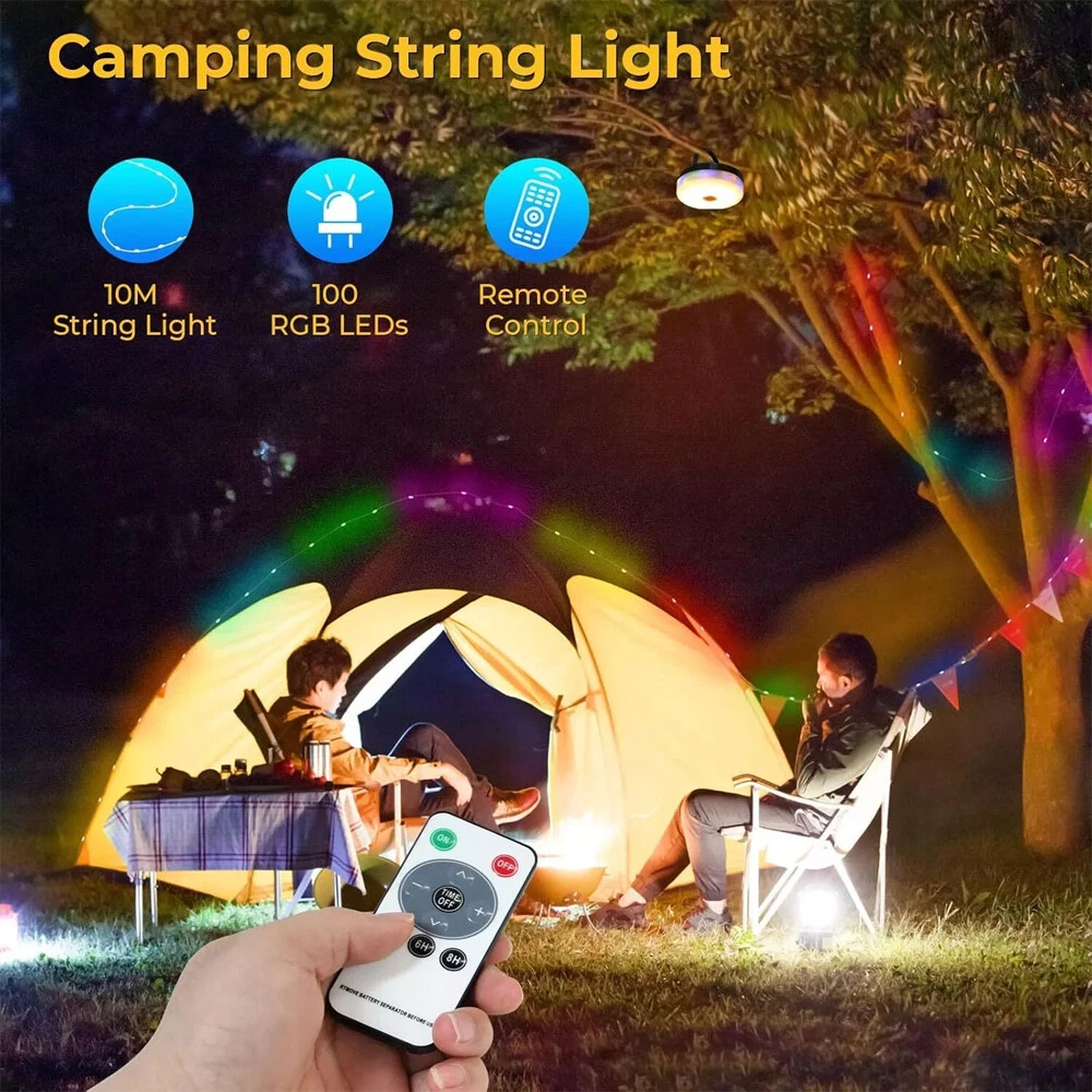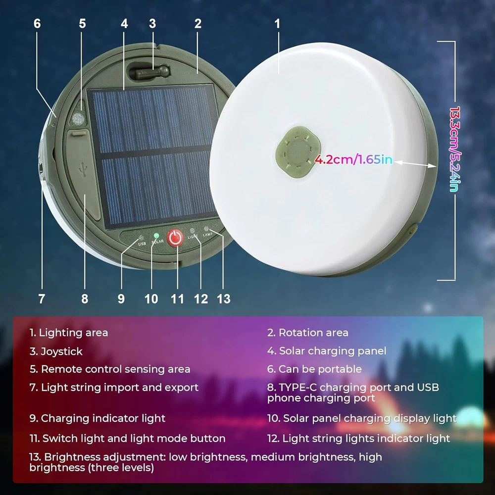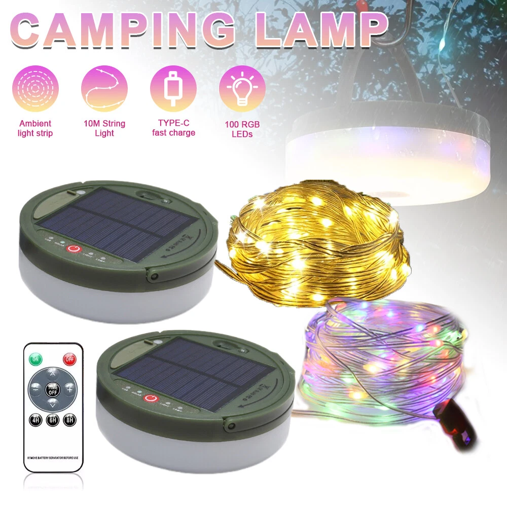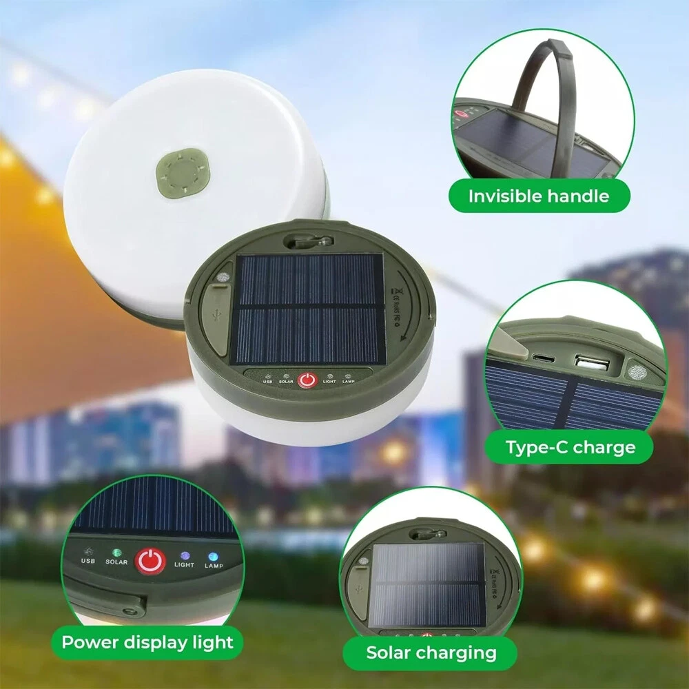 3 in 1 Solar/USB Camping String Lights Rechargeable Outdoor Waterproof Tent Lamp