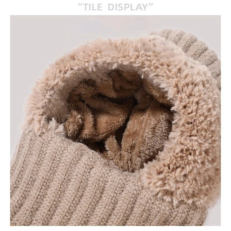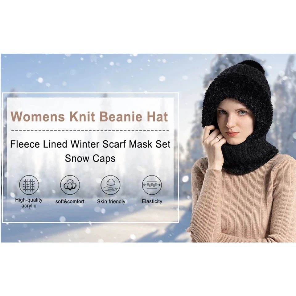 3 in 1 Womens Knit Beanie Hat Fleece Lined Winter Scarf Mask Set Snow Caps Gifts Description