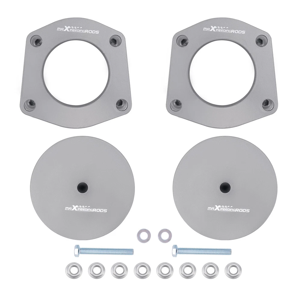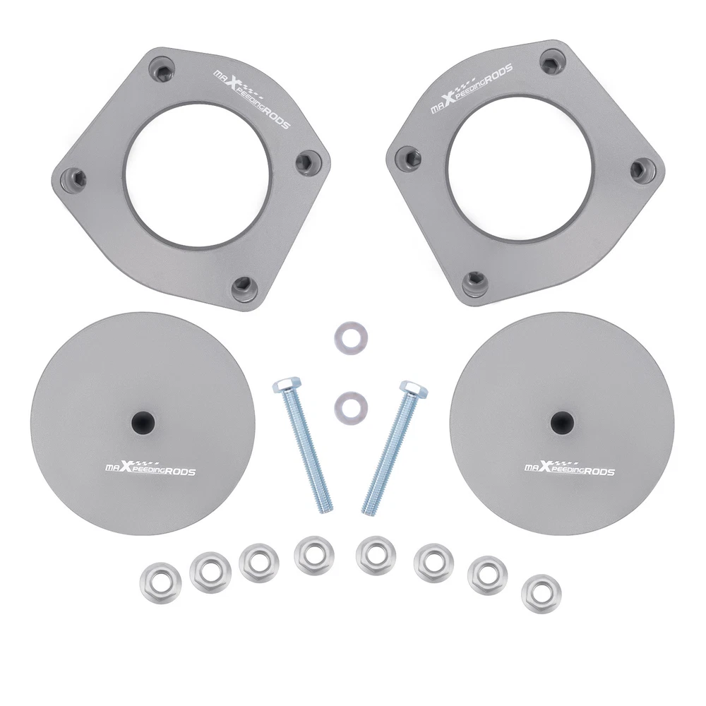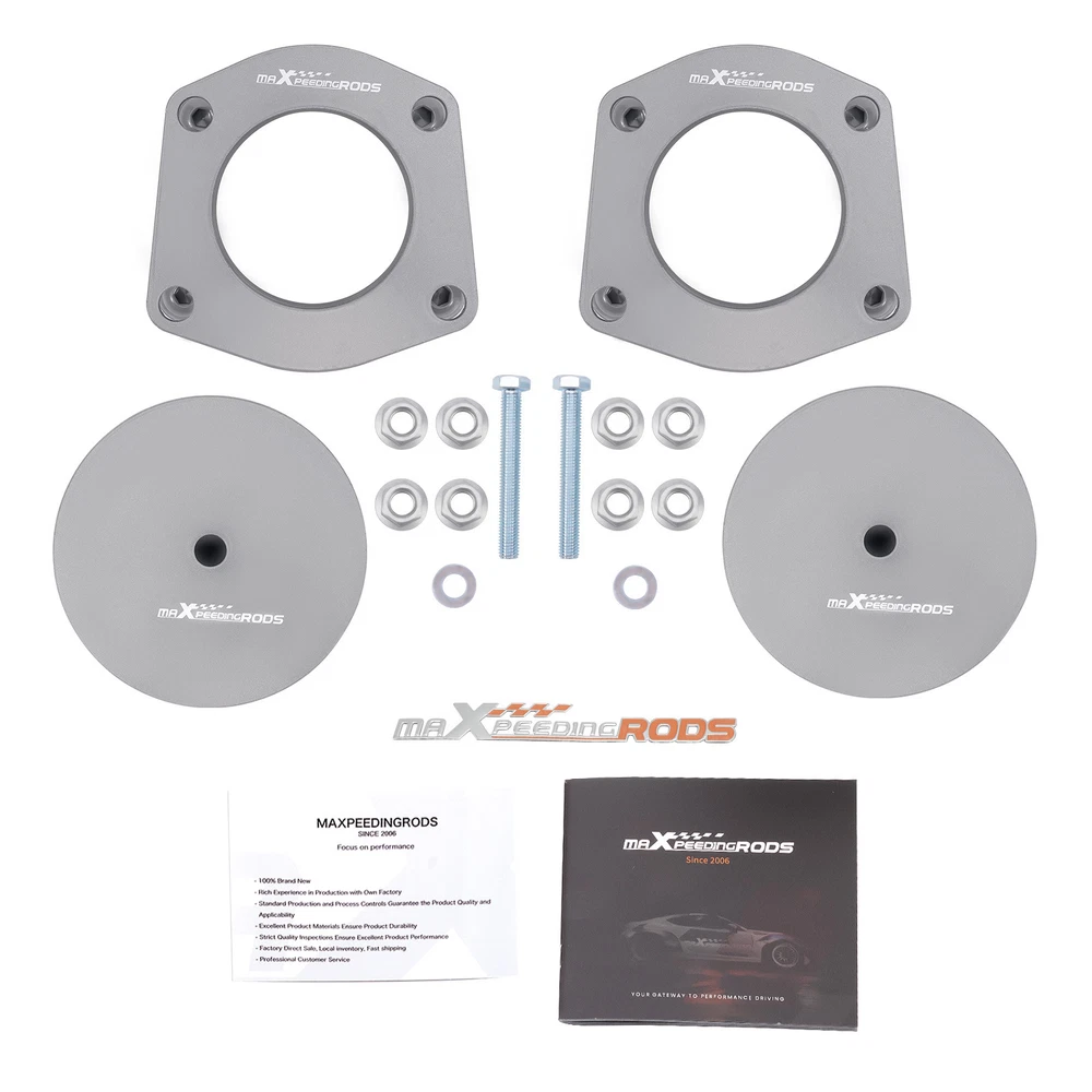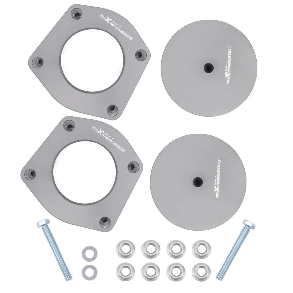 Introduction: The suspension on this vehicle requires a spacer that is not a 1:1 ratio. According to the length of the lower control arm and the position where the control arm is installed, a higher height than the actual thickness of the gasket is provided. Benefits: Improves the look of your truck and increases ground clearance, allowing you to fit larger custom rims and tires. Application for: for Jeep Grand Cherokee WK 4x2 / 4x4 2005-2010 2WD 4WD (Please confirm it just fit for 2005-2010! Not fit for other years of this model!) for Jeep commander XK 4x2 / 4x4 2006-2010 2WD 4WD Features: Heavy Metal Suspensions products are the safest way to lift your vehicle without compromising ride quality, Maintains Smooth. Improves the look of your truck and increases ground clearance, to Conquer On and Off-Road Obstacles. allowing you to fit larger custom rims and tires. Easy to Install, No special tools are required to mount these bolt-on spacers. Do not need an extra spring compressor. Every piece of steel is CNC cut and expertly welded, and coated to resist corrosion and rust, ensuring its longevity in even the most extreme riding conditions Specification: Condition: Brand New Material: Carbon steel Maximum Lifting Height :3 Inches Product Height: 1.8 inch Front Spacer & 3 inch Rear Spacer Install time:1-2 hour Package Size: 33*23*15cm Weight: 6.58kg Package Includes: 2x Front Strut Spacers 2x Rear Spring Spacers Installation Hardware Extended shocks/relocation bracket may required Notes : Easy to Install, Do not need extra spring compressor. We do strongly recommend performing an alignment after altering the suspension of your vehicle. Vehicles equipped with aftermarket struts may achieve a higher lift, because they are up to 1" longer than OEM struts. MXR04FXJT