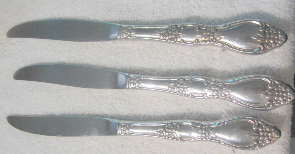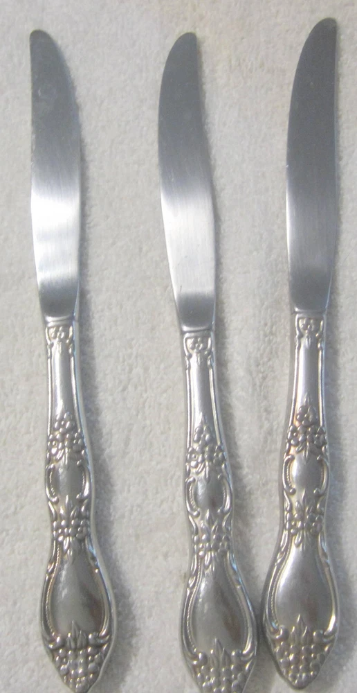 Time Period Manufactured:1970-1979Brand:ONEIDACulture:AmericanOriginal/Licensed Reproduction:OriginalStyle:Mid-Century ModernCountry/Region of Manufacture:UnknownCharacter:nagtin13:does not applyMPN:naType:KnifeUPC:does not applySet Includes:KnifeSeller Notes:“Use wear in very good shape. see pics for condition.”Color:SilverDepartment:AdultMaterial:Stainless SteelHandle Material:Stainless SteelNumber of Items in Set:3