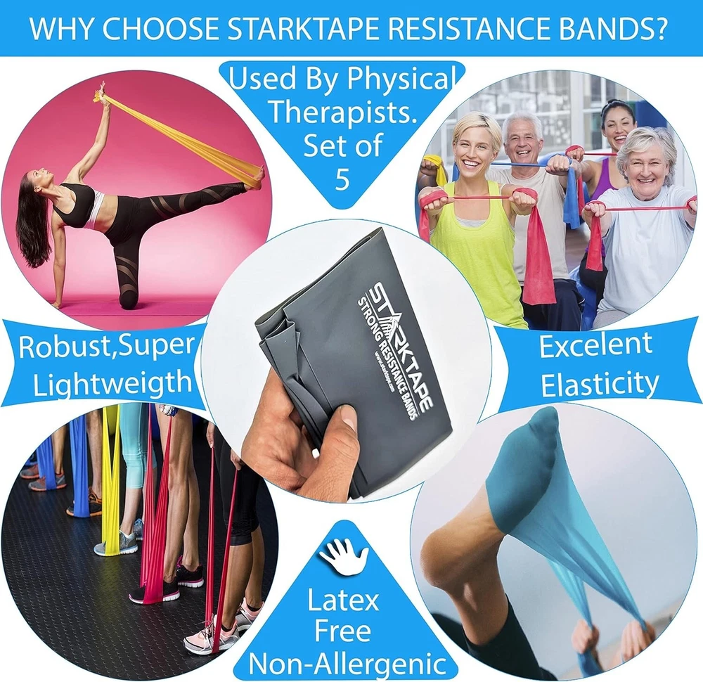 3 or 5 Pack Non-Latex Resistance Bands for Physical Therapy and Professional Training