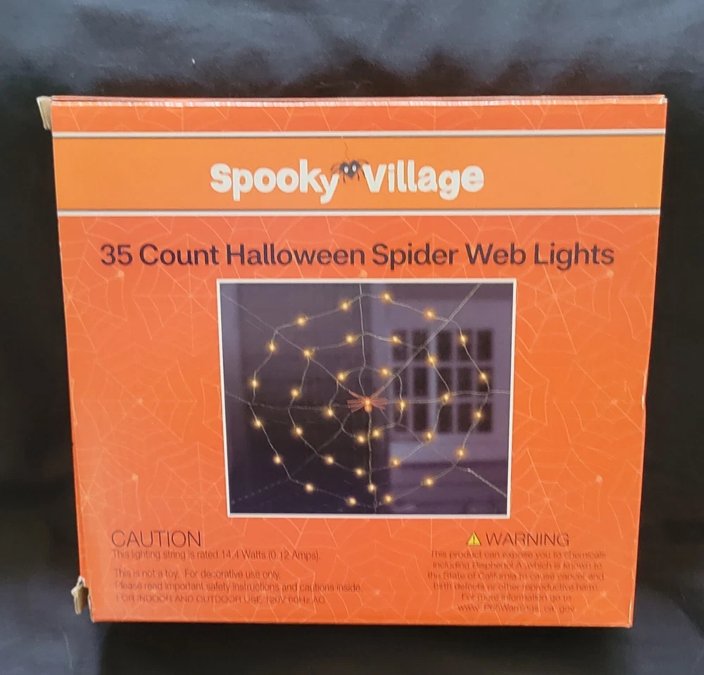 Get ready for a spooky Halloween with this Spooky Village spider web light set. The set includes 35 counts of multicolor lights that create a mesmerizing effect on any surface. The 5-foot long light strand is made of durable plastic and features suction cups for easy attachment. Perfect for indoor and outdoor use, this corded electric light set is sure to add a touch of Halloween spirit to your home decor. Whether you're throwing a Halloween party or simply want to create a spooky atmosphere, this Spooky Village light set is the perfect choice. Auction is for 3 boxes! Shipping is $12.99! We ship all items with the utmost care.