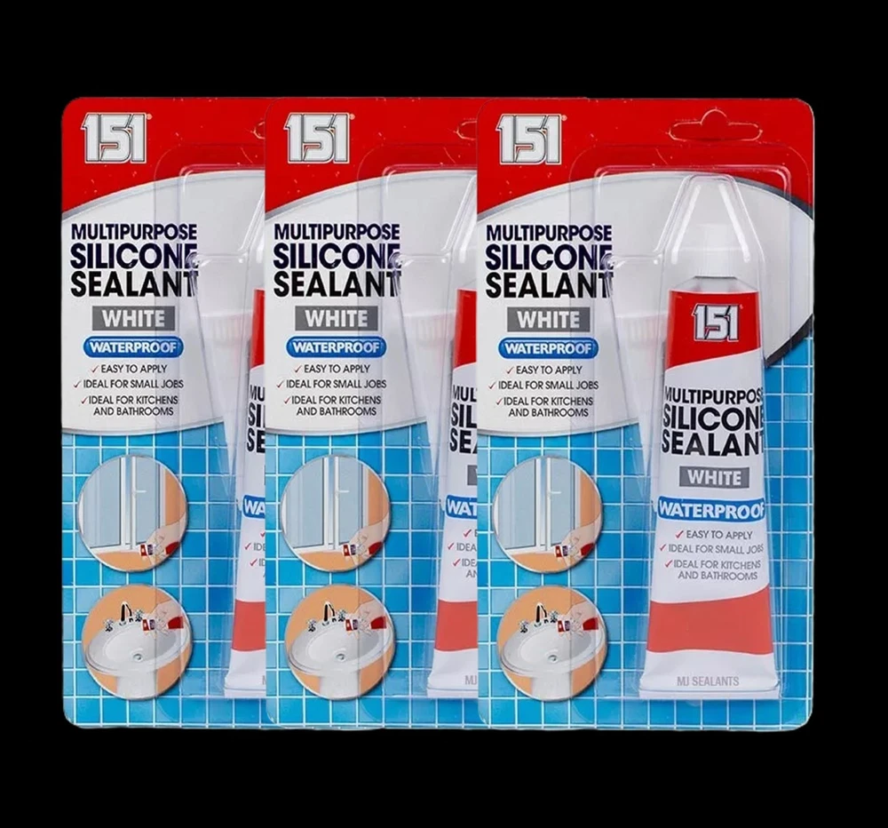 3 x WHITE WATERPROOF SILICONE SEALANT 70G FOR SMALL JOBS WINDOW SINK BATH SHOWER
