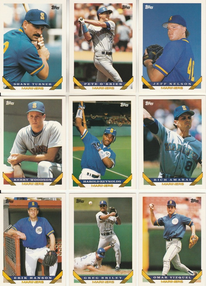 Shipping and Handling includes secure Bubble Mailer, Top Loaders and Delivery Confirmation! Combined Shipping is Available! (30) 1993 Topps Seattle Mariners Series1 and Series2 Team Lot! ***Missing card # 423 Bubba Smith RC for a complete Mariners Team set*** You will receive every Mariners player in the scans! See Scans for players or message me for player listing. All cards are scanned. NO INTERNATIONAL BUYERS PLEASE! Thanks for looking!