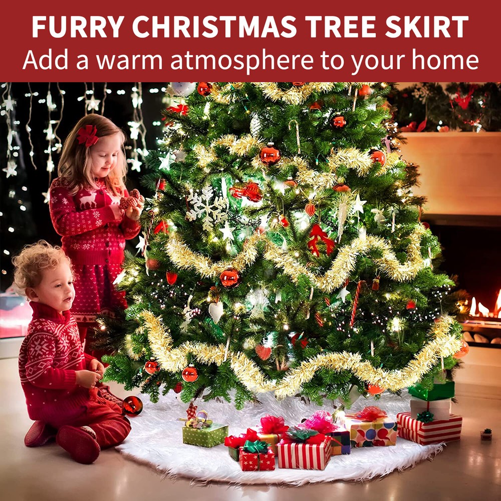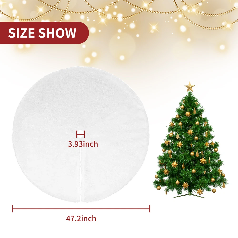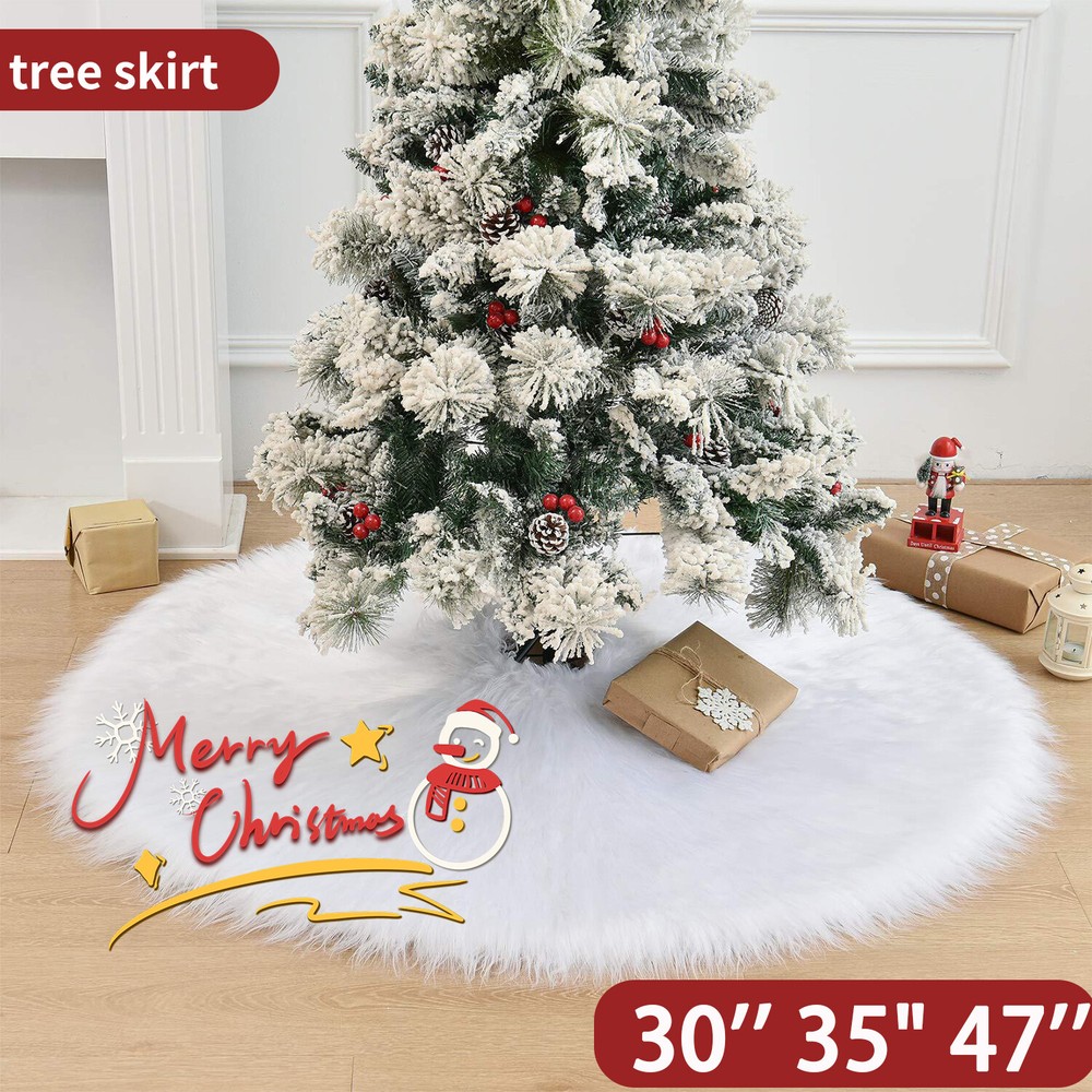 Feature HIGH QUALITY - The well-made white Christmas tree skirt which was selected from high-end plush material and made of soft faux fur. Its well constructed and densely faux fur make the tree skirt have a good quality and give you a comfortable feel. Moreover, durable material make it possible to use it year after year. MINIMALIST & ELEGANT - Its classic white make the Christmas tree shirt and your home more elegant, aesthetic and minimalist. You can buy it as a perfect gift to your family or use it decorate your Xmas with them. SOFT & COMFORTABLE - The fur of the Christmas tree skirt are soft and warm, plus a pure white color overall design, it will attract children and pets to touch even consider to lie down on it. It’s a perfect Christmas tree decorations, make a festive atmosphere and happiness around your family!And you can wash it by hand with cold water, or you can dry cleaning it. You also can fold it up and store if not needed. APPLICATIONS - Make a festive homey ornaments for your Christmas tree at home, school, office, store, etc. Adding more holiday atmosphere to your home. Your families can put any decorations you like on the Christmas tree skirt. Notes: Due to the light and monitor difference,the item's color may be slightly different from the pictures. Please allow 1 inch differs due to manual measurement. If you have any problems with our product, please contact with us first, we will solve it for you within 24 hours on working days. Package Includes: 30'' 35" 47'' x Christmas Tree Skirt