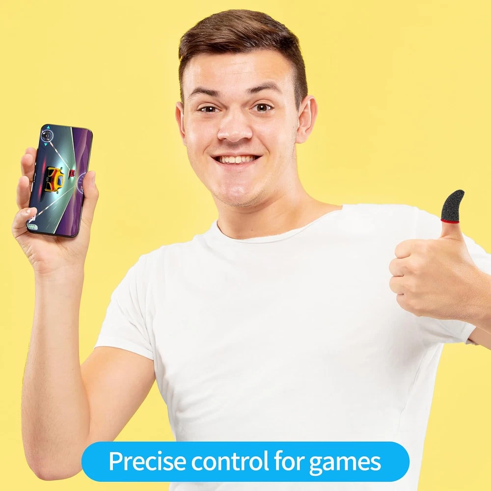 Compatible with all devices: Precision Gaming Finger Sleeves remove friction and "game drag" for the ultimate in touch control accuracy and smooth consistency. High sensitivity: Finger gamer gloves made from genuine carbon fibre, providing highly conductive touch response and sensitivity with strong tensile strength. Not only does it reduce friction on the screen, but it also ensures touch sensitivity, allowing you to fully immerse yourself in the gaming experience without any distractions from the outside environment. Thin and breathable: Finger sleeve for gaming gray is breathable and seamless, greatly enhancing touch sensitivity. Thin, soft and comfortably flexible. Our gaming finger covers resist the adverse effects of moisture, sweat, dust and oil on the game. Highly elastic: The mobile game finger sleeve can be adjusted and fits most people's finger sizes, fits comfortably for different finger sizes, no tightness, no friction, easy to carry and can be kept in your pocket or bag. Packaging: 30 pieces of gaming finger sleeves, enough to meet your gaming daily needs. These finger covers can be used not only when you are playing mobile games, you can also use it while using your mobile phone. Compatible with all devices, finger sleeves for precision gaming for ultimate touch control accuracy and frictionless consistency . With strong tensile strength, it reduces friction on the screen, allowing you to fully immerse yourself in the gaming experience without any outside distractions. Our mobile gaming finger covers resist the adverse effects of moisture, sweat, dust and oil on the game. The mobile gaming finger covers can be adjusted and fit most people's finger sizes for a comfortable fit with no tightness for different finger sizes. Name: 30pcs Seamless Anti-Sweat Breathable Finger Sleeve Gloves for Gaming Colour: red/ blue/yellow Material: fibre Size:4.4 x 2.3cm/1.73 x 0.91inch