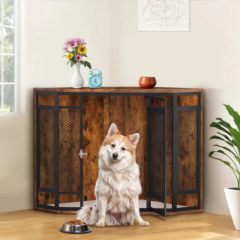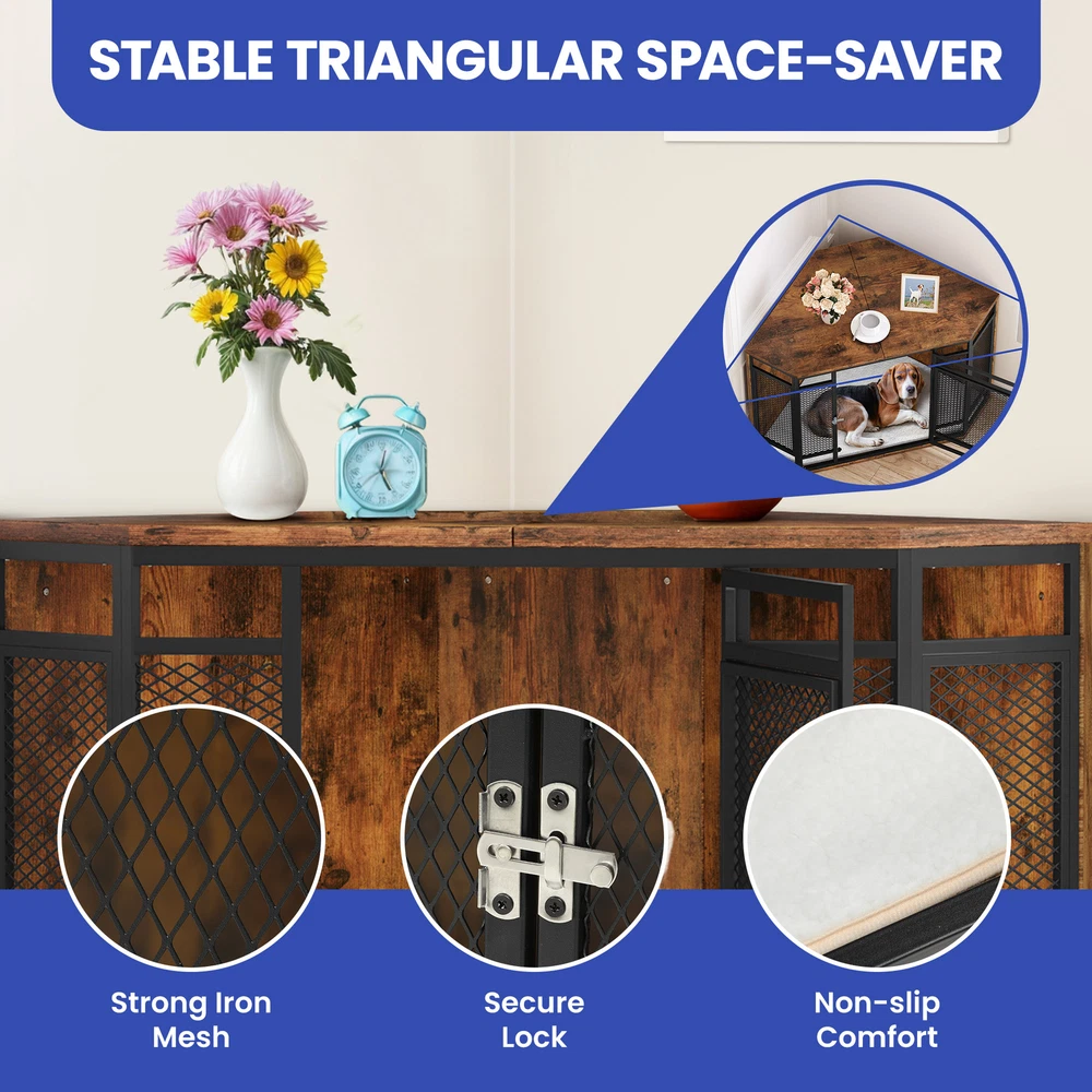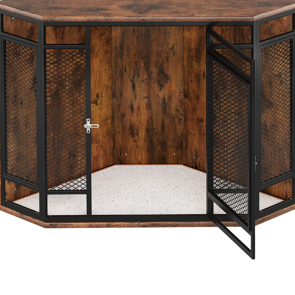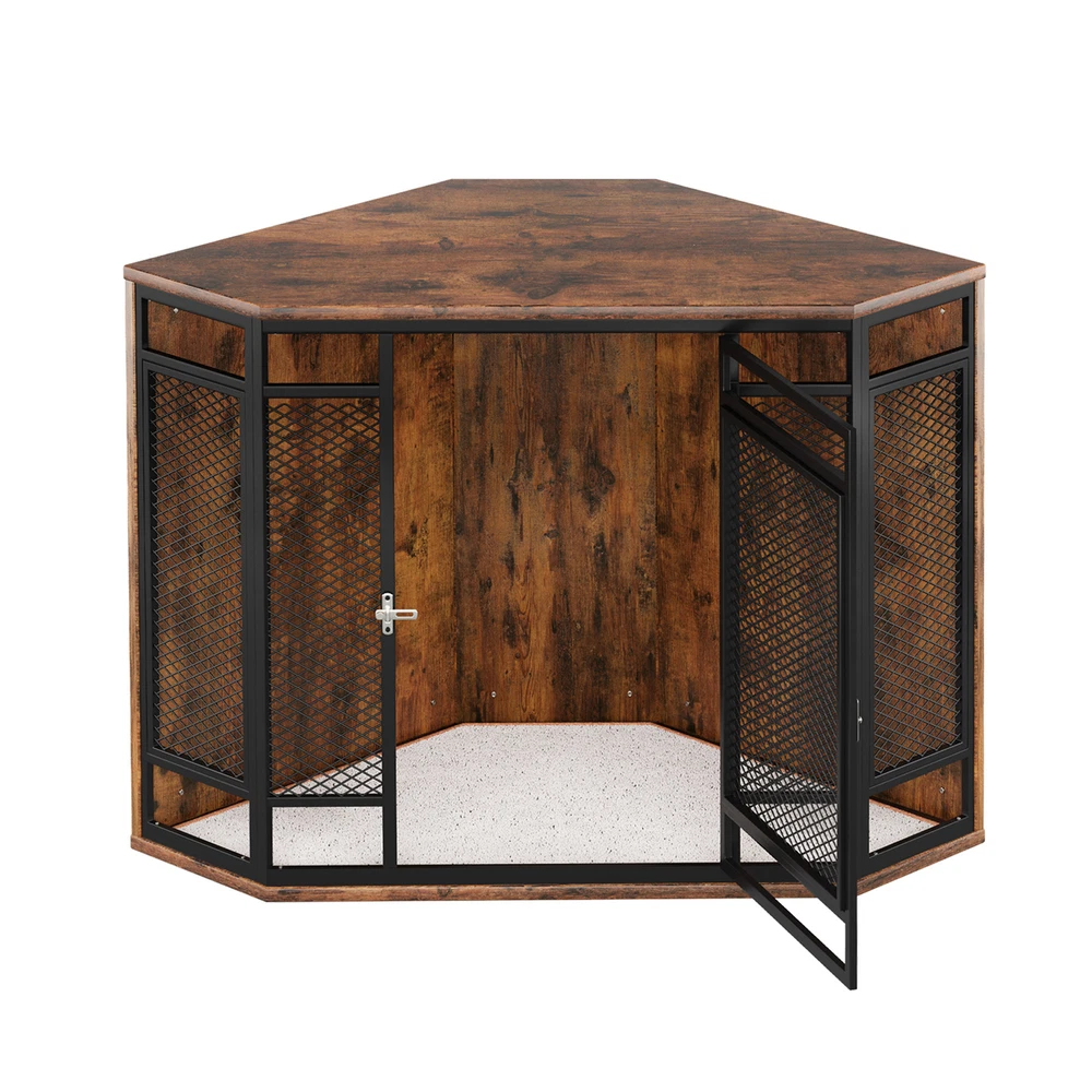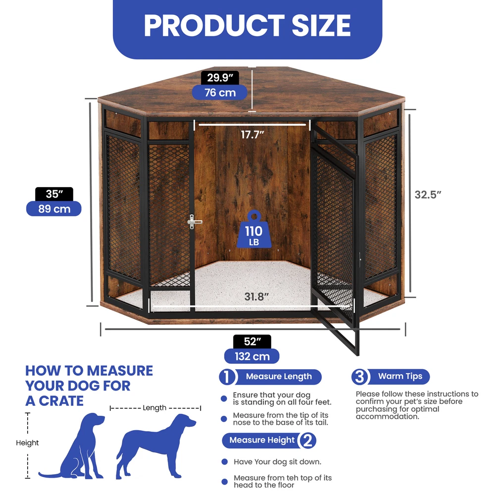 30" Dog Crate Corner Pet Kennel Cage Iron Frame Brown Removable Blanket Lockable Product Description NOTE: Professional Installation would be Highly Recommended. Description: 1. Color : Brown 2. Features : Non-Slip Cushion, Removable Blanket, Secure Lock 3. Material : Iron, MDF Board, Steel, and Wood 4. Mounting : Free Standing 5. Room : Bedroom, Kitchen, and Living Room 6. Shape : Triangular Features: Built to Last with Premium Materials Made from sturdy iron , MDF board , and wood . Our kennel offers exceptional durability and style. Our robust construction supports up to 110 lbs . Providing a stable and safe space for small to medium breeds. This blend of functionality and aesthetics ensures long-lasting use and timeless appeal. Ultimate Safety and Security Features Our secure lock mechanism ( padlocks not included ) ensures your pet stays safe and sound when you’re away or during nighttime. Designed to prevent accidental openings, it gives you confidence that your pet is protected at all times. Enjoy worry-free moments knowing your furry friend is secure. Comfortable and Non-Slip Design Our kennel features a non-slip cushion that keeps your pet cozy and secure. Preventing accidental slipping during play or rest. Our included removable blanket adds extra warmth and convenience. Making it easy to clean and maintain. Your pet will enjoy a comfortable and secure resting space every day. Versatile Placement and Easy Assembly With our freestanding design and compact dimensions ( 29.9"L x 52"W x 35"H ), our kennel fits seamlessly into your entryway, living room, or dedicated pet area. Our included assembly hardware and instruction manual make setup quick and hassle-free. Bring style and practicality to any room with minimal effort. Dimensions: 1. Maximum Weight Capacity : 110 lbs 2. Overall Dimensions : 29.9"L x 52"W x 35"H 3. Weight : 88 lbs Package Included: 1. 1x Medium Pet Kennel 2. Assembling Hardware Kits 3. Instruction Manual Book *) EXCLUDING PADLOCKS Shipping 1. Normally the item will be dispatched within 1 business day if payment is cleared before 12pm PST. 2. Please verify the correct shipping address in your PayPal account before making the payment. We only dispatch the item to the address that is sent to us at the time of checkout. 3. We don't ship to Hawaii, Alaska, Puerto Rico, APO/FPO/PO Boxes. 4. We don't provide local pick-up service. 5. Normally we will use USPS, UPS, FedEx & LTL to dispatch items. Payment 1. We accept PayPal and credit card. 2. We will ship to the confirmed Paypal shipping address that is provided with the payment only. Return 1. 30 days Money Back Guarantee. 2. Please contact our customer service to receive a RMA form first if want to return the item. 3. All returned items MUST in new condition with the original package. Contact If has any problem, please contact us by sending an ebay message. Our customer service will resolve the problem as soon as possible. On Oct 11, 2024 at 06:48:00 PDT, seller added the following information: On Oct 13, 2024 at 23:15:51 PDT, seller added the following information: On Dec 21, 2024 at 09:34:54 PST, seller added the following information: