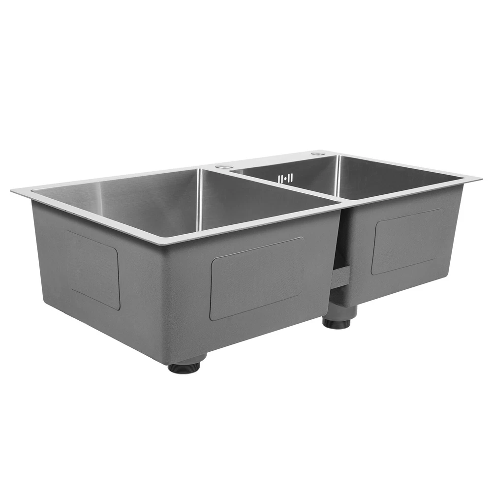 Specifications Material: 201 Stainless Steel, Rubber Color: Silver Style: Modern Shape: Rectangle Surface Treatment: Wire Drawing Assembly Required: Yes Installation Type: Independent, Embedded Number of Sinks: 2 Drain Diameter: 8.5cm/3.35in Large Sink Inner Size: 35*35*20cm/13.8*13.8*7.87in Small Sink Inner Size: 30*30*20cm/11.81*11.81*7.87in Drain Basket Size: 36*20*5cm/14.17*7.87*2in Gross Weight: 8.35kg/18.4lbs Net Weight: 6.95kg/15.32lbs Product Size: 78*43*21cm/30.7*17*8.26in Package Size: 81*48*26cm/31.9*18.9*10.23in Package Included 1*Kitchen Sink 1*Drain Basket A Set of Drainage Pipes All Accessories for Assembly Welcome Description Does the already crowded kitchen often bother you with issues such as insufficient space, clogged sinks, and difficulty in cleaning? Then I suggest taking a look at our kitchen sink! Its smooth and sturdy material ensures durability while also making it easy to clean. The large capacity sinks make ideal use of kitchen space, which can easily solve the above problems and help you create a cleaner kitchen. Specifications Material: 201 Stainless Steel, Rubber Color: Silver Style: Modern Shape: Rectangle Surface Treatment: Wire Drawing Assembly Required: Yes Installation Type: Independent, Embedded Number of Sinks: 2 Drain Diameter: 8.5cm/3.35in Large Sink Inner Size: 35*35*20cm/13.8*13.8*7.87in Small Sink Inner Size: 30*30*20cm/11.81*11.81*7.87in Drain Basket Size: 36*20*5cm/14.17*7.87*2in Gross Weight: 8.35kg/18.4lbs Net Weight: 6.95kg/15.32lbs Product Size: 78*43*21cm/30.7*17*8.26in Package Size: 81*48*26cm/31.9*18.9*10.23in Package Included 1*Kitchen Sink 1*Drain Basket A Set of Drainage Pipes All Accessor ies for Assembly Key Features Kitchen Assistant: With a balanced combination of practicality and aesthetics, it can assist with a series of cleaning activities. Whether for commercial or household use, its thoughtful design can provide convenience, and save time and energy. Large Capacity: Two spacious sinks (13.8*13.8*7.87in; 11.81*11.81*7.87in) can accommodate most bowls and plates, providing you with more space to perform different cleaning tasks. Easy to Clean: The smooth surface, round corners, and anti-condensation coating after wire drawing treatment allow you to easily remove stains with a damp cloth or sponge dipped in a little detergent. The deodorant drainage filter can collect food and debris for easy handling, and prevent clogging of drainage pipes Sturdy & Durable: It is mainly made of 201 stainless steel, combined with wire drawing technology, it has good anti-corrosion , rust prevention, and scratch resistance . Free Installation: According to your decoration preferences, you can choose to install independently or embedded to better adapt to different decoration situations. Quiet Work: The bottom soundproof pad can reduce the noise from sewage discharge, providing you with a quieter environment. Modern and Simple: The low-key and luxurious silver color, delicate connections, and smooth streamlines give this sink set a modern and simple appearance, which fits most household styles. Quality Service: We are honored that you have chosen our product. We have sufficient confidence in the quality of the product so that you can buy it confidently. But if you have any questions, you can contact our customer service, he will patiently answer and solve your problems. Details Overflow Outlets: The height-appropriate overflow outlets prevent water flow from leaking out due to high water levels, and timely discharge of excess water. Drain Basket: The equipped drain basket can help you dry dishes, fruits, vegetables, etc. while keeping the countertop clean. Large Drainage Hole: The 3.35'' drainage port can efficiently discharge sewage in a short period and is not prone to blockage. Drainage Line: The X-shaped drainage line guides water to the drainage outlet for quick drainage to keep the sink clean and dry. Application It is an ideal choice for places such as garages, laundry rooms, basements, terraces, bars, kitchens, bathrooms, farms, backyards, commercial restaurants, etc. It is very suitable for manually cleaning food, fruits, vegetables, etc. Notes Please note that this product cannot be connected to the dishwasher. Please do not use corrosive detergents or strong alkaline or oxidizing chemicals such as soda, bleaching powder, sodium hypochlorite, etc., or use sharp objects such as steel wire balls to clean the surface of the product. Please allow the slight color difference caused by the shooting light and 1-3cm error due to manual measurement, and make sure you do not mind before you order. This product does not include a faucet or telescopic basket, but rather a drainage basket. This product does not include a faucet or telescopic basket, but rather a drainage basket. Payment Delivery details Terms of sales About us Contact us Payment We accept ebay payment 。 Fees such as import duties, taxes are not included in the item price or shipping costs. These charges are the buyer's responsibility. Delivery details Shipping: 2-9 working days to: USA Terms of sales We maintain high standards of excellence and strive for hundred percent customer satisfaction. Feedback is very important to us. We hope that you contact us immediately before you give neutral or negative feedback, so that we can address your concerns. It is impossible to address issues if we do not know about them! About us Your satis faction is our ultimate goal. We work hard to earn your trust and future business. Our certified technicians have tested each item before shipping. The unit comes with 1 year limited warranty on all manufacturing defects. a) If you receive a defective item, you may return it or ask for a discount. Please contact us within 14 days after you receive the package. b) What you returned must be intact and in its original packaging as re? u. Customer is responsible for shipping costs of the returned item. c) We will cover the cost of shipping back t with the s