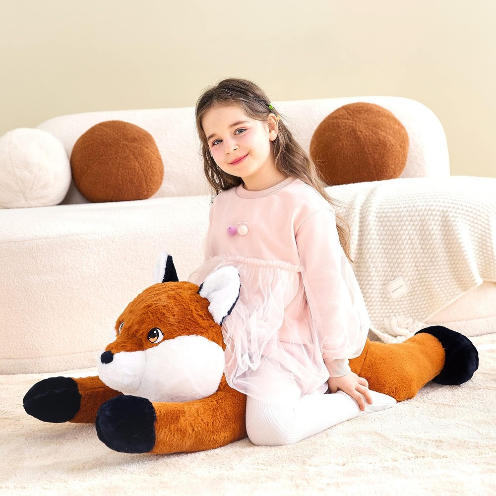 Giant Measures 30": is a brand focusing on producing giant stuffed animal toys, we designed this giant fox hugging pillow to give you more choices. Just click our brand name and enter into the store to get a lovely toy for your loved ones Soft And Very Plush: stuffed fox is both durable and incredibly soft to the touch and hug, we did every detail well to make our plush toys excellent Premium Quality: Our stuffed animals have passed EN71 and ASTM test, so please feel free to buy and use our stuffed toys Wonderful Gift: This stuffed animal is suitable as a birthday, Christmas or Valentine's gift. Your children or friends will fall in love with this soft toy cause it's really very cute Surface-washable Construction For Easy Cleaning: Please don't put the animal toy in the washing machine, that will tear it up. You just need a soft brush and a bottle of cleanser to clean it