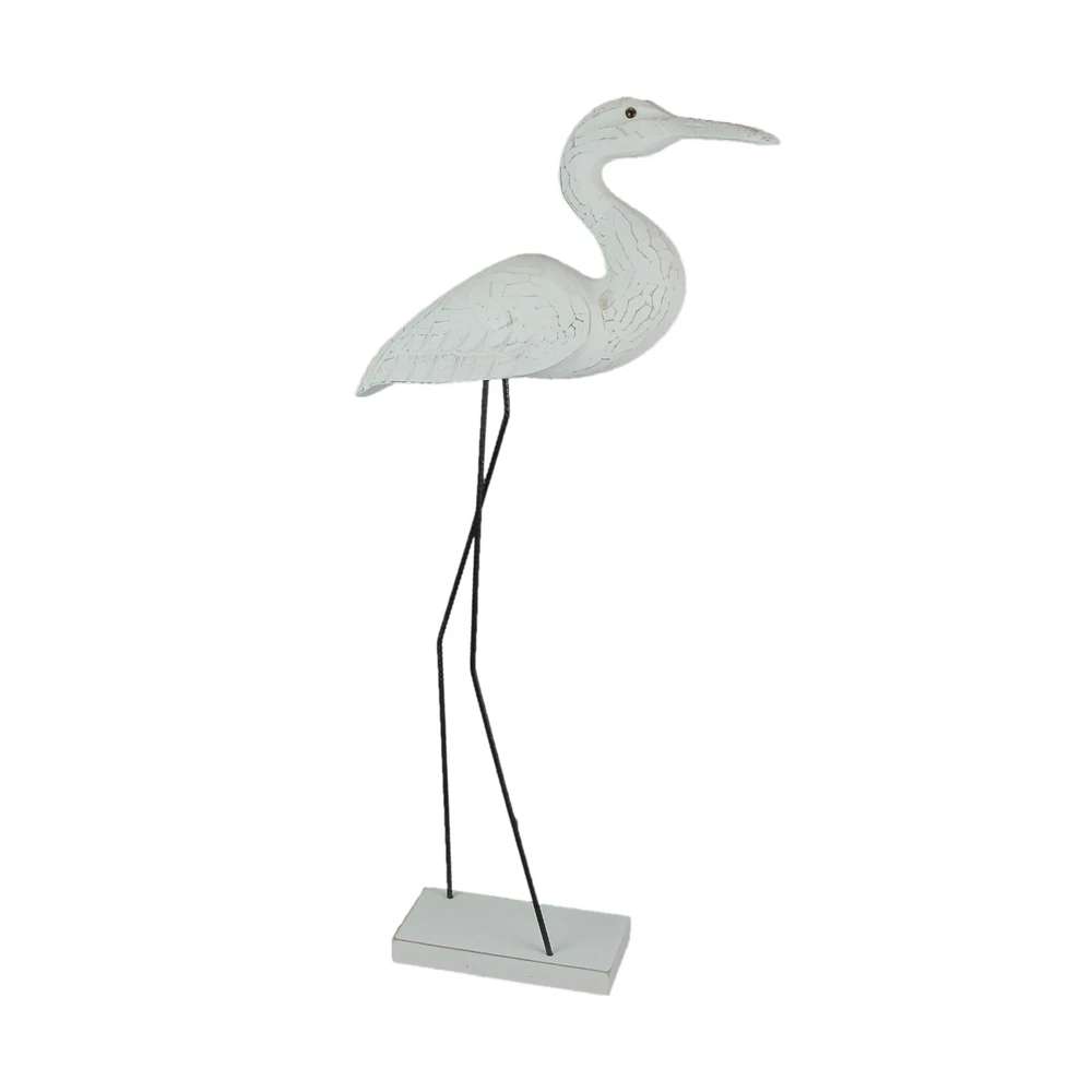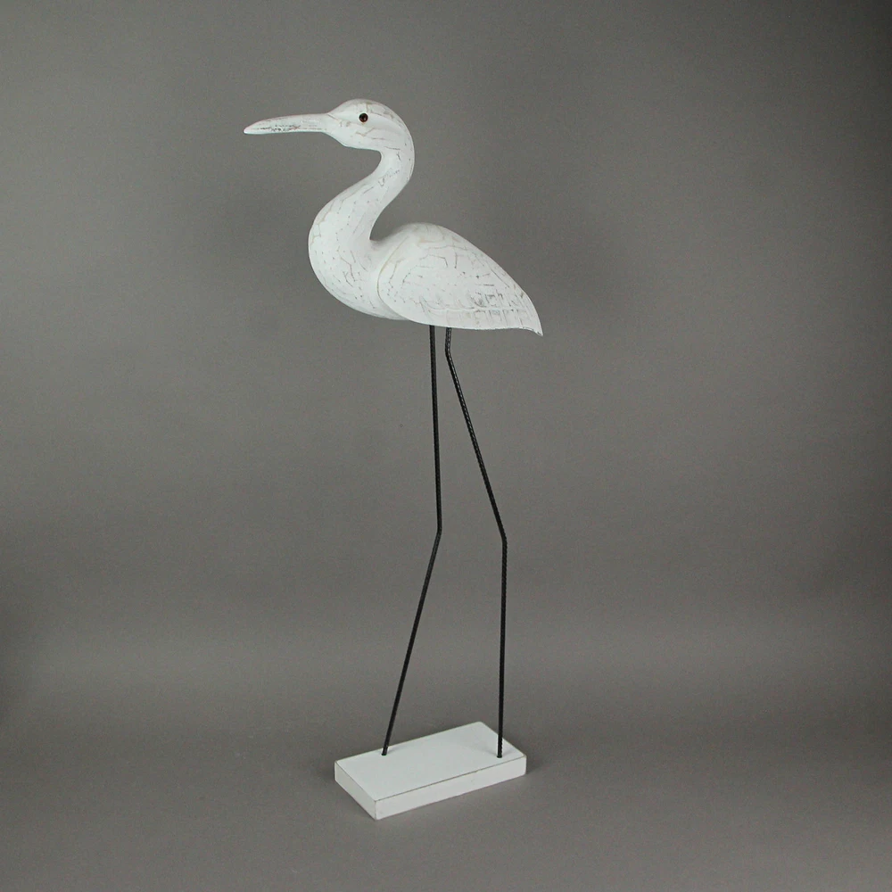 If you love the shore, but live inland, you can bring the look of the coast to your home with this wonderful hand-carved wooden egret statue, with legs made of reinforced steel round bar. Place on a table with plants or on a wall shelf as part of a gallery wall. The white painted finish has a distressed look giving it a seaside appearance. It measures 30 inches high, 10 inches long, and 4 inches wide. This wood and metal statue is a charming way to beautifully complement beach, coastal and nautical decor styles. Our eBay Store About Us Add to Favorite Sellers 30 Inch Hand Carved Wood and Metal White Bird Statue Coastal Decor Sculpture OVERALL SIZE - 10 Inches Long, 4 Inches Wide, 30 Inches High DURABLE MATERIAL - Creatively Crafted of Albesia Wood and Reinforced Steel Bar UNIQUE DETAIL - Hand Carved And Painted For A Unique Sculpture INDOOR / OUTDOOR - Looks Great on Porches and Patios as Well as Bedrooms and Living Rooms GREAT GIFT - For Yourself or For Friends and Family If you love the shore, but live inland, you can bring the look of the coast to your home with this wonderful hand-carved wooden egret statue, with legs made of reinforced steel round bar. Place on a table with plants or on a wall shelf as part of a gallery wall. The white painted finish has a distressed look giving it a seaside appearance. It measures 30 inches high, 10 inches long, and 4 inches wide. This wood and metal statue is a charming way to beautifully complement beach, coastal and nautical decor styles. Product Details Color White Height 30 Length 10 Weight 2.25 LB