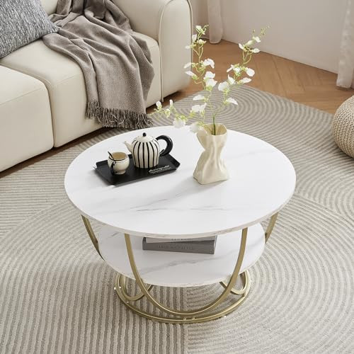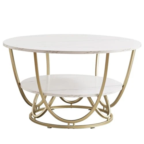 Return Policy Fast Delivery Trusted seller Round Coffee Table with Storage, 30 Inch Modern Coffee Table for Living Room,Wooden Tabletop-Marble White Print with Gold Frame Product Description [Modern Coffee Table] The coffee table has a square base and semicircular-frame side braces that support a white marble print surface full of textural beauty, creating a modern and gorgeous look. The unique and elegant design makes the coffee table perfect for living room, bedroom, balcony, etc. [Exquisite coffee table top] The coffee table top is made of 0.6" thick MDF wood board, with smooth and delicate white marbling print surface, waterproof and pressure resistant. 30" wide top provides enough space for green plants, magazines, laptops, etc. [Sturdy and Durable Coffee Table] The frame of the coffee table features a rose gold powder coat finish that is rust resistant. The heavy-duty steel frame provides strong support for the coffee table and can withstand loads of up to 220 lbs. 4 adjustable feet protect both the coffee table and your floor. [Multifunctional Coffee Table] The stylish coffee table is both practical, with 2 levels of spacious storage space for frequently used or larger items such as books, magazines, potted plants and some decorative items. The spacious space at the bottom is w cats like to hide and play. [Easy to Assemble & Dimensions] Simple construction makes it possible for anyone to assemble it in 20 minutes. Includes all parts and instructions, no more tools needed.Overall Dimension: 30"(D) x 30"(W) x 17.7"(H), weight: 25.13 lbs. Shipping Returns Payment Shipping Shipping is FREE to all addresses other than APO/PO boxes in the lower 48 states. All our stock ships from US-based warehouses. Shipped via USPS or UPS (depending on location and package weight) Unless stated otherwise, all orders will ship within 24-72 hours of your payment being processed. Check our feedback to see the great reviews of FAST shipping we offer. Returns Seller does not accept returns Payment We currently accept payment via eBay managed payments only. Once payment is cleared, we will dispatch your shipment within 1-3 business days. Please refer to the "Shipping" tab for more information regarding shipping speed to your destination.