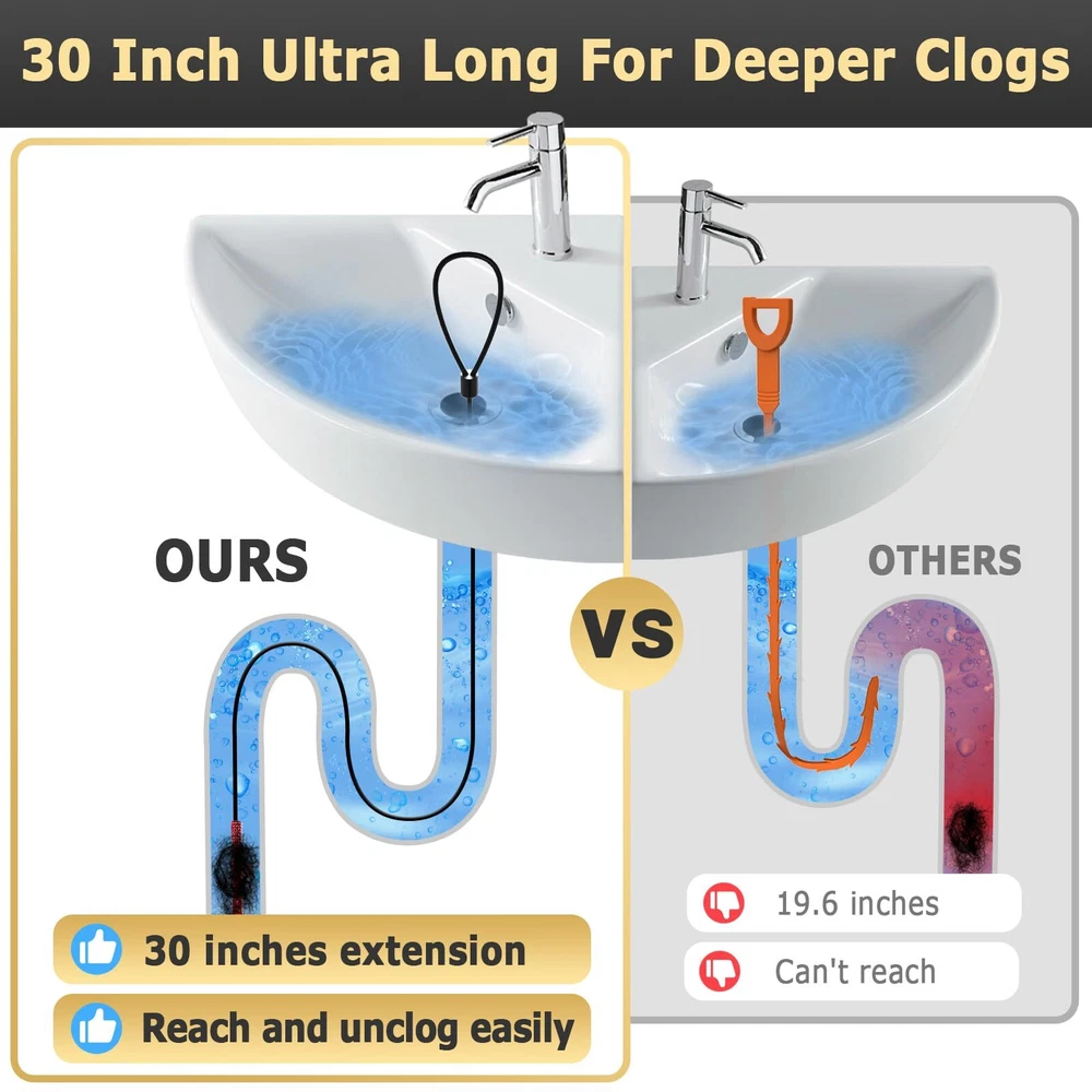 30 Inches Drain Snake Hair Clog Remover Upgraded Antibreak Metal Drain Hair Remo