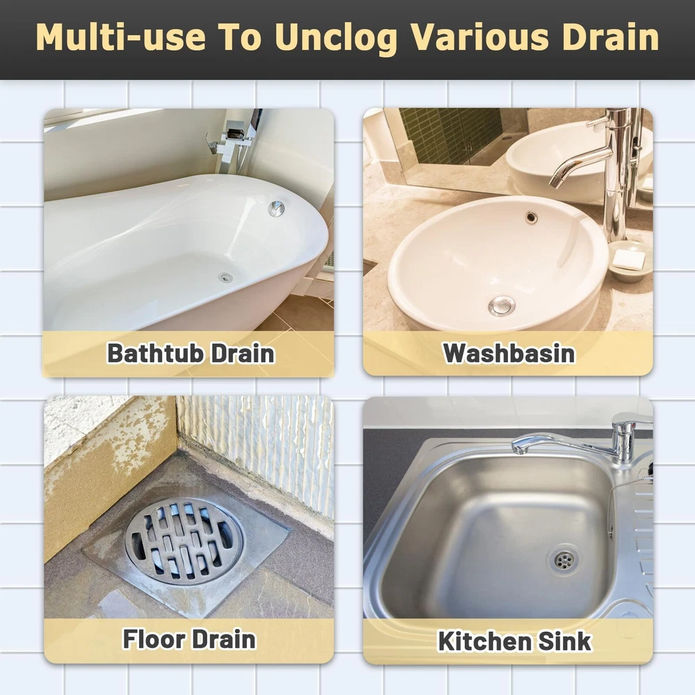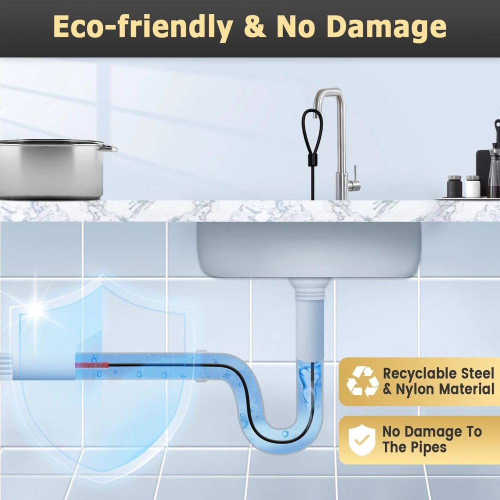 Drainsoon 30 Inches Drain Snake Hair Clog Remover, Upgraded Anti-break Metal Drain Hair Remover Tool with Nylon Coating, Drain Auger for Shower Drain, Kitchen, Bathtub Sink Cleaning (Black-3pack) [Upgraded Anti-break Metal Plumbing Snake With Nylon Coating] Compared to plastic hair snakes, these drain hair removers consist of premium steel with 300 lbs load-bearing capacity, which increases great rigidity to prevent them from snapping effectively. And combined with nylon coating, these tools are also flexible enough to bend into complex “P/U/S” traps. So, with a combination of metal and nylon materials, the drain clog remover will be durable and flexible for cleaning the clogs better. [Upgraded Micro-hooks Design For Efficient Cleaning ] Multi micro-hooks are integrated on the end of the sink snake, helping you cling to hair clogs and grime effectively. Moreover, with 0.23” in width, the drain auger is capable of passing through narrow spaces in the pipes without getting stuck. Reinforced with tightly stitched edges, unlike plastic snakes’ barbs which easily break off in pipes, this shower snake can prevent micro-hook parts from detaching to cause more blockage. [30 Inches Extended Sink Snake For Deeper Blockage] According to the International Residential Code, the standard distance between a kitchen sink drain and the floor is 28 inches. This means that our 30-inch hair drain clog remover is long enough to go deeply into most pipes to reach and unclog the blockages in the sink drain line. Thus, this drain cleaner tool could be applied to most floor drains, bathroom sinks, bathtub drains, washstands, kitchen sinks, etc. to clean deeper clogs. [Easy-to-use Shower Snake For Different Clogs] Compared with the plumber that costs many waiting hours and a lot of money, our hair clog remover will be your convenient and low-cost choice. Simply require you to insert the drain hair catcher into the clogged drain, and push it farther until it reaches the obstruction. Then, spin the handle and pull it back slowly to get the clogs out of the drain. Your clogging culprits like hair clogs and debris will be removed immediately in a short time. [Unclogging Drain Eco-friendly & No Damage ] Unlike chemical cleaners, this sink clog remover is completely made of eco-friendly and recycled steel and nylon material, which will not do harm to the pipes or pollute the groundwater environment. It is very safe for you or other family members to clean the blockages in the bathroom or kitchen. Why don’t you try this hair snake to fix the clogging issues to get water flowing quickly in your drains or sinks? SHIPPING Domestic Buyers - We ship within 3 business days of payment, usually sooner - We offer FREE shipping on all orders! - We only ship to the lower 48 states, no APO/FPO addresses or PO Boxes allowed - We have confidence in our products, but if you are not fully satisfied please contact us within 30 days of purchase and you will get full refund. International buyers – please note: Import duties, taxes, and charges aren't included in the item price or postage cost. These charges are the buyer's responsibility. - Please check with your country's customs office to determine what these additional costs will be prior to bidding or buying. * Order Cancellation Policy ** You can return a product for up to 30 days from the date you purchased it. 1. The seller reserves the right to cancel the special case only due to eBay cancellation fee. 2. The decision of seller is the final. 3. The seller will respond to the cancellation request within 2 business days. Please wait for the result of cancellation. 4. In case the cancellation is not completed by some reasons, the buyer can follow the options below to get the refund. 4.1 The buyer can reject the item when it arrives. 4.2 The buyer can send the item back to the seller within 30 days If the buyer receives item (USA Shipment ONLY). The seller will provide the FREE return label to the buyer when the buyer opens " Return Item" case on eBay by using the reason as "Change my mind" ONLY. 5. When buyer has placed the order. The order will be processed and completed by automatic warehouse system within 5 minutes. In case that buyer sends the cancellation request after 5 minutes of placing the order, the request will be rejected. **Sending direct message to cancel the order is not allowed for every case.* Return Policy For the return case - If buyer would like to return the items for refund or replacement, please CONTACT SELLER to receive the free return label from seller. The refund or replacement will be processed with the tracking number of return label which is provided by seller only. The other ways of return which are not approved by seller will not be processed for the refund or replacement.