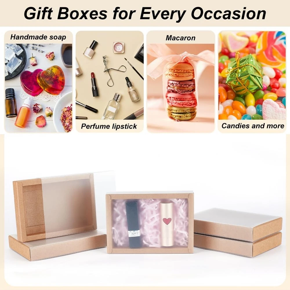 Specification: Material: Paper Size: about Unfold: 30cm wide, 37.1~37.2cm long, fold: 17x10x4cm, inner size: 15x8x4cm, 0.05cm thick, 30pcs. Package:Package includes 30 sets of kraft paper boxes with transparent windows, practical and easy to use, sufficient quantity is enough for you to place some items, very convenient. Size: Our gift boxes are about Unfold: 30cm wide, 37.1~37.2cm long, fold: 17x10x4cm, inner size: 15x8x4cm, 0.05cm thick to meet your needs. Material: The gift packaging box is made of high quality kraft paper, safe and reliable to use, the top is designed with a transparent see-through window, which is convenient to display your exquisite items and make your gifts look more exquisite. Easy to Assemble: The party gift box is flat packed to prevent damage in transit, the cake box is pre-folded packed, you just need to press hard along the folds to deepen them, the treat box will be folded quickly. Widely Used : The bakery box with window can meet your daily life baked goods packaging needs, not only for pastry boxes, but also perfect for weddings, bridal christenings, birthday parties, Christmas.