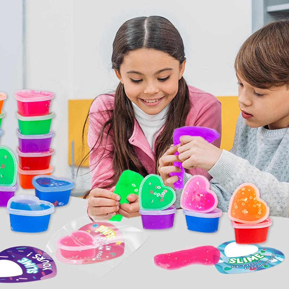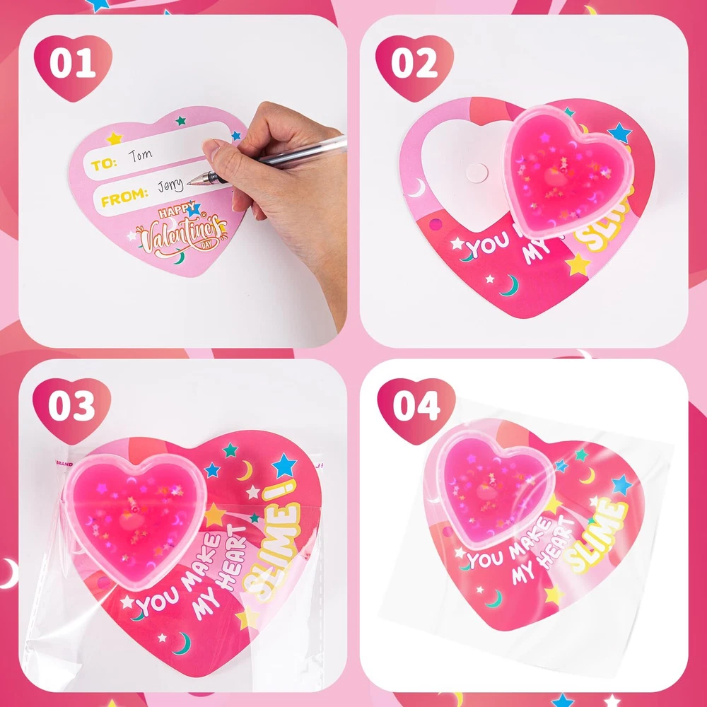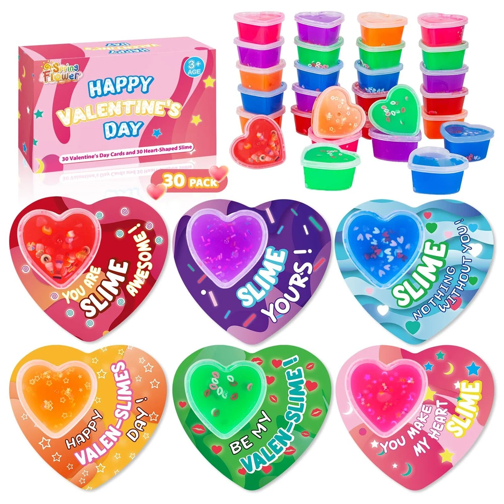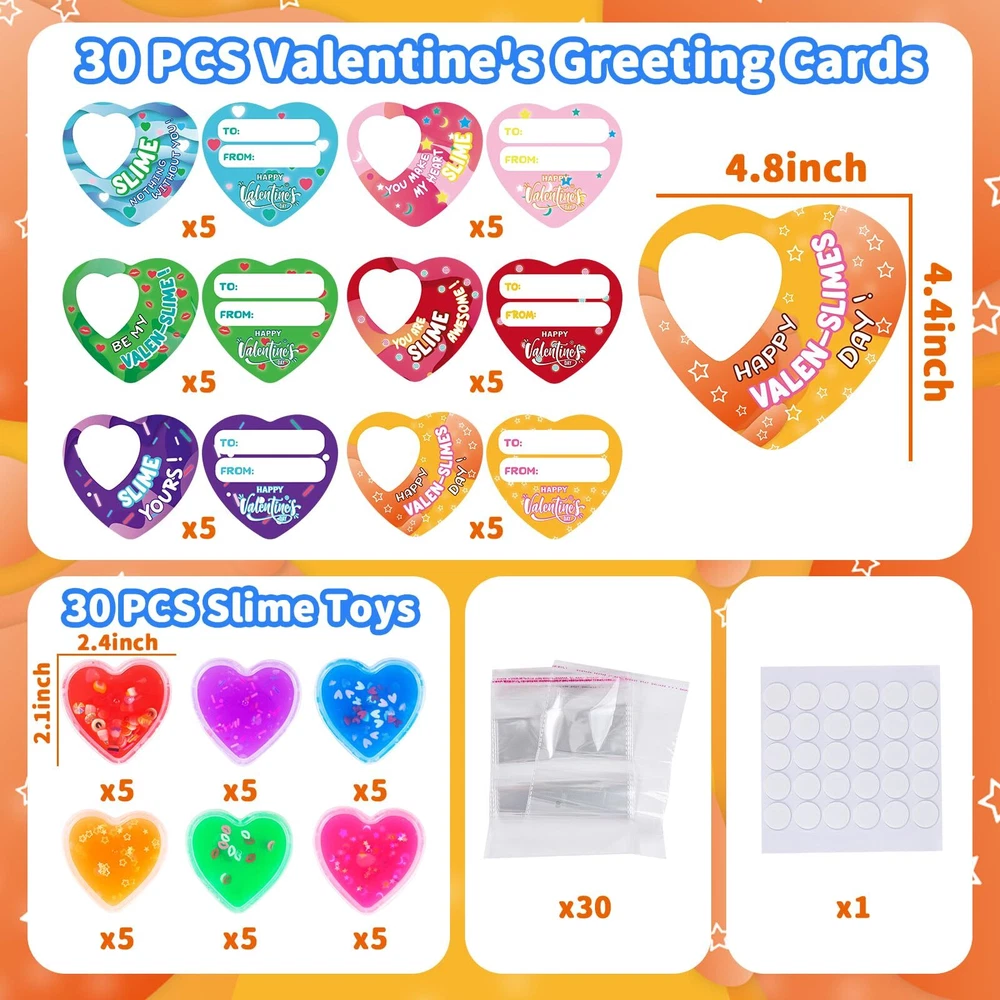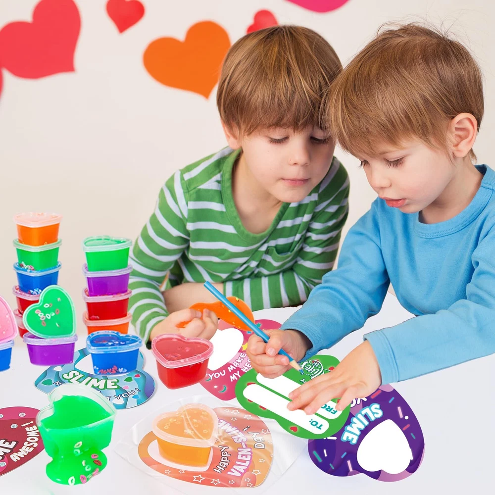 【Super Value Valentines Set】Valentines day card set with heart shape slime toys, which has 30 pcs valentines cards and 30 pcs slime toys. This Valentines gifts set also have 30 glue dots, as 30 clear bags. Kids can have a great preparation to hand out valentines day gifts and exchange with their classmates. 30 pack also enough for kids to hand out a class at school. 【Ideal Valentine's Cards For Kids】Valentines cards have 6 different designs, each card is colorful, cute and attractive. Greeting card has front and back, kids can write name on back. Kids can stick slime on valentines cards then put it into the clear bags. It is the perfect valentines gifts for elementary and preschool to send their classmates, friends and families. This valentines day kids card set will let boys and girls give more than a normal card. 【Perfect Valentine's Day Gifts】This valentines cards with slime kits are ideal valentines day gifts for kids classroom exchanges, preschool or elementary school Valentines parties, Valentine's event, or Valentine's game prize. Each slime include a number of glitter, kids can play slime for more fun. 【More Fun For Valentine's Day】Our slimes and cards are made from high quality and safe materials so all age old kids can enjoy this. Our slimes and cards made from high quality and safe materials so kids as young as all age old can enjoy this. It is soft and comfortable to touch, durable and reusable, kids can entertained for hours. It is also a relaxing toy for all age people, children can play during play. Slime toy not only portable but also very safe from kids skin. 【Exchange Gift And Share Love】Valentines day is the great day for kids to express their love for friends, classmates and families. If you want to throw a ideal valentines day party for kids boys and girls. Our valentines day cards with toy are suitful for valentines party favors. Our slime toys set provides endless fun and entertainment for kids. If you have any questions please feel free to contact us. We will reply to you within 24 hours and help you to solve problem immediately.