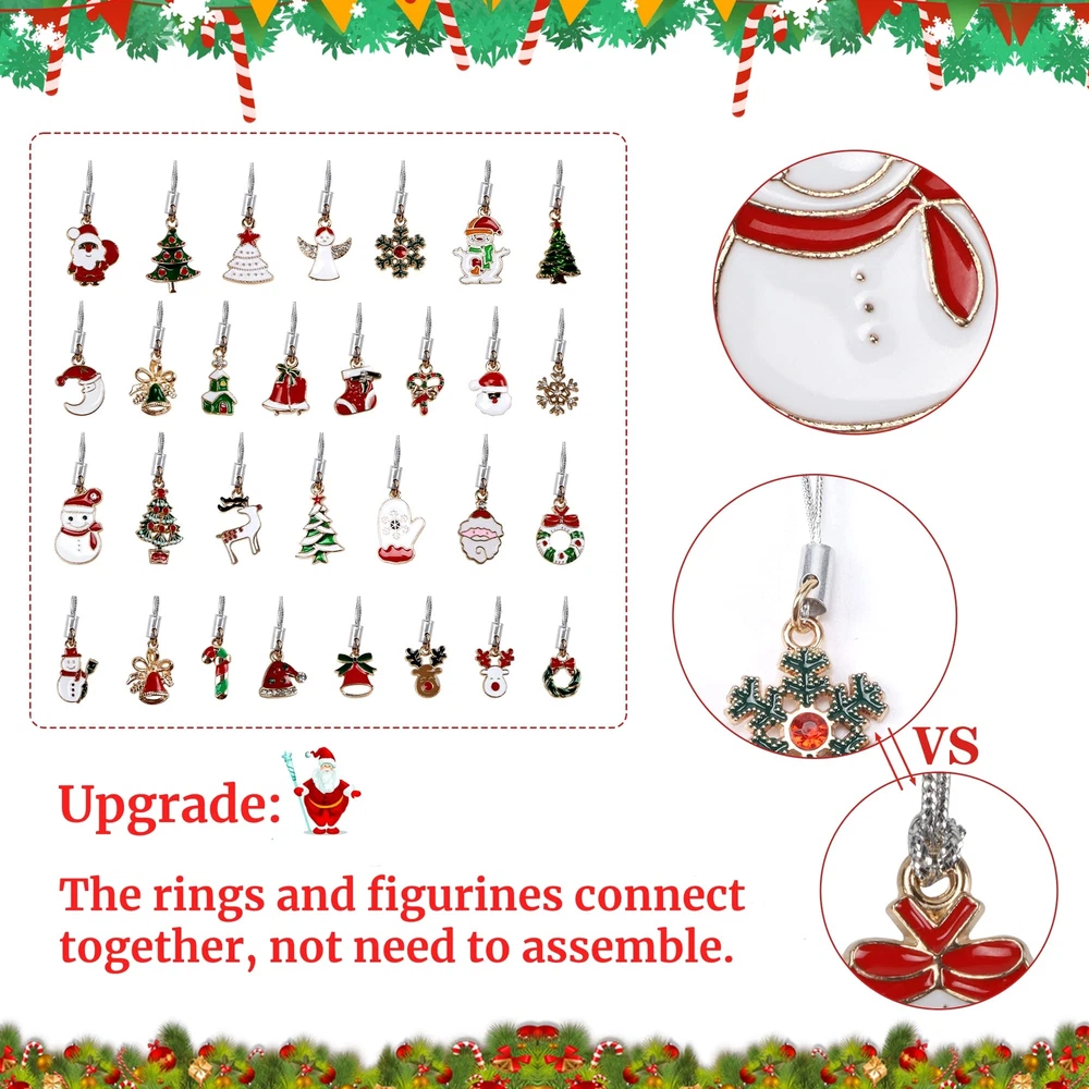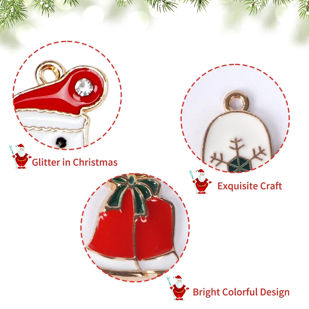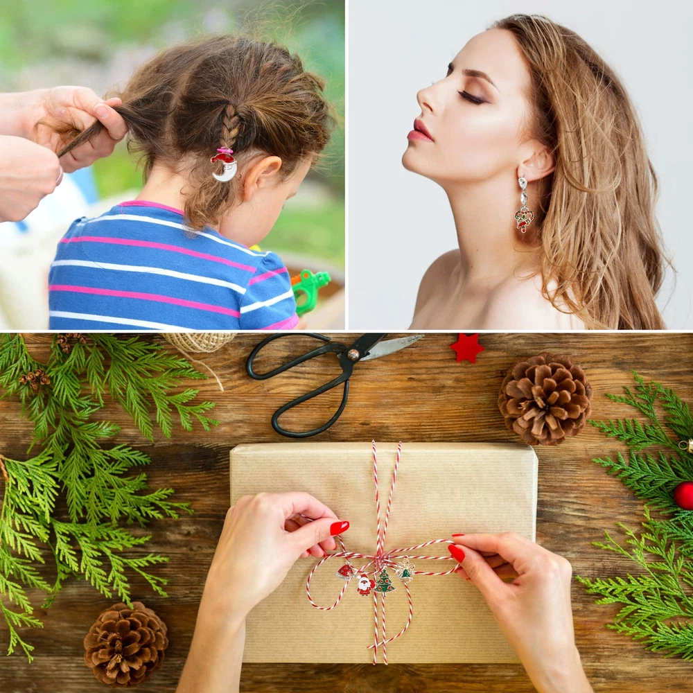 Christmas Ornaments Set: The whole set is composed of 30 pcs figurines with Christmas elements and 30 Pcs silver strings. The cute figurines with Christmas elements include Santa Claus, Christmas tree, snowman, Santa hat, reindeer, stockings, gift boxes, jingle bells, gloves, Christmas balls etc., (no duplicated). Material: The Christmas tree ornaments are made of zinc alloy, non-toxic, 1-2 g each pc, light and durable, good looking with shiny gold rim, which can be used in years. Small Size For Mutil Occasions: These metal Christmas ornaments are less than 1 inch, fitting for small Christmas trees ,mini table-top Christmas tree, wreath or decoration of gift boxes, also as hearwear and ear studs. The Ways Hanging With String: On the top of each figurine, there is a metal loop for string, the diameter is 3 mm. We prepare the 30 pcs strings tied already into a circle, you don't need to tie strings. The way of threading is shown in the picture or video. Rich colors: The Christams hanging ornaments with colors full of in Christmas element, decorate your home, school, office, store, hotels and other occasion, bringing a warm lively festive touch.