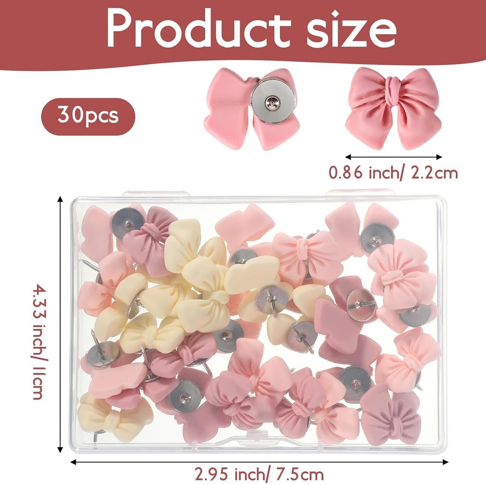 Free eBay listing template designed by dewiso.com 30 Pieces Decorative Bow Push Pins, Bowknot Thumb Tacks for Wall Cork Board Pin Fun Colorful Pushins Cute Pink Push Pins & Tacks for Home School Office Corkboard Bulletin Board Wall Decorations FREE AND FAST SHIPPING! About this item Package Contents: This set includes 30 bow-shaped push pins, packed neatly in a clear case. It's the perfect quantity for all your everyday needs at the office, home, or school Durable and Reliable: Made from premium resin and strong metal, these wall tacks are built to last. They won’t easily bend or break, ensuring long-term, reliable use for any project Perfect Size: Each bulletin board pin measures 2cm (0.9 inches), making them the ideal size for pinning up photos, notes, posters, or maps without damaging the surface Attractive Design: Featuring a charming bow shape in soft pink hues, these cute thumbtacks are not only functional but also add a cute and colorful touch to any space. The vibrant colors won’t fade over time Versatile Use: These decorative wall pins are perfect for a variety of uses, including marking on corkboards, bulletin boards, maps, or displaying photos, they make a thoughtful gift for teachers, colleagues, and friends Product We offer a 30-Day Return Policy on items which you are not completely satisfied with. You have the option for a full-refund or an exchange of the item. No returns are available on items shipped outside of the US . Shipping We offer Free Shipping to the US and ship within 2 business days of payment, usually sooner. We use UPS express shipping. That's why your products are usually delivered within 3 days . Contact We try our very best to make sure every customer is completely satisfied. If there's a problem , message us! We're happy to help. 24/7 live chat available.