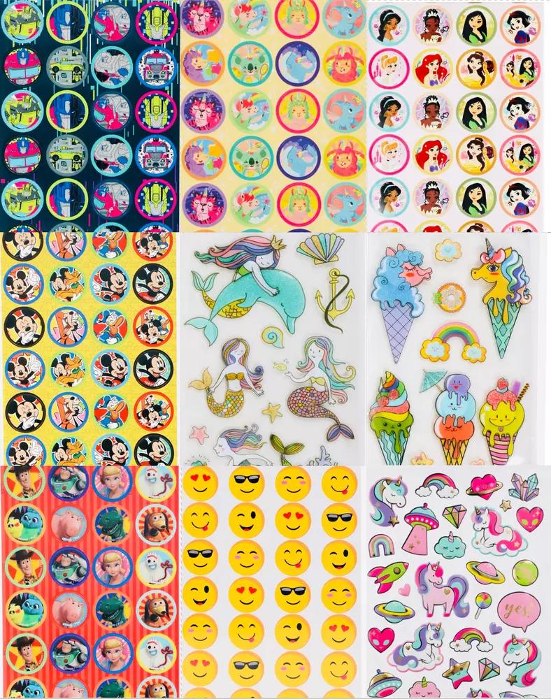Fun Assortment of Puffy, Scrapbook, Cartoons, Bubble, Pop Up Stickers Packs For Everyone! You will receive 30+ Packs of beautiful colorful assortment. I have included a large variety of pictures of the assortment available. The pictures give you an idea of what you will be receiving. Please Note: You will not receive everything pictured. Please contact me with any special requests. This HUGE Variety of fun designs stickers can be used in parties, classroom, school and home, good for reward for students, potty training, adding inside a birthday card, game activities, entertaining toddlers, etc. Perfect Gifts for Kids & all Occasions: Can be given as a gift for kids, girls, boys, toddlers, teens, students, friends, and classmates, they will love it!