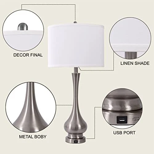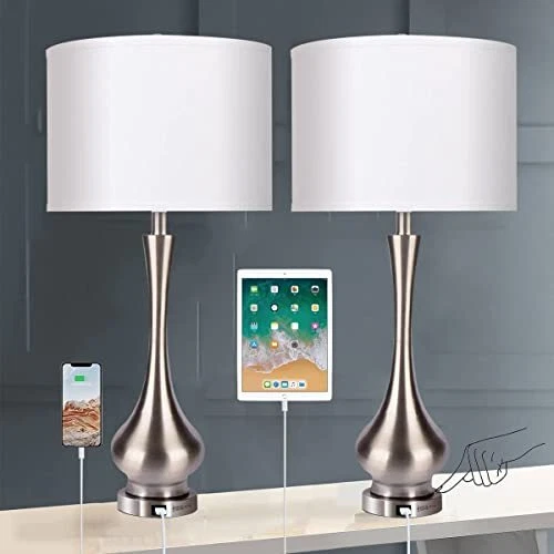 Menu 1. We require immediate payment. 2. We currently accept payment via eBay managed payments only. 3. Once payment is cleared, we will dispatch your shipment within 1-3 business days. Please refer to the "Shipping" tab for more information regarding shipping speed to your destination. 30" Tall Table Lamp Set of 2 with Touch Control, Farmhouse Table Lamp with USB Ports, 3-Way Dimmable Modern Brushed Nickel Finish Bedside Large Table Lamps for Living Room and Bedroom Product description Add Different Charm for Home Decor: The touch table lamp's design is very modern, mix metal base and premium fabric factor, the sensor lamp looks advanced. More than just functional for your modern home, this end table lamp lends artful appeal to your space as it shines. Try adding one to your entryway to add warmth as your guests arrive. Modern Table Lamps: Tall 30inch modern table lamps with USB Port, support 5V/1A quick charging. Charge your electronics devices like mobile phones, iPad, kindle readers, and so on, regardless of whether the lamp is on or off. Please remember to turn on the power switch before charging. 3-Way Dimmable Touch Control Lamps: The touch lamps for bedroom set of 2 can tap any place of the metal base and body to switch 3 modes of lighting (low, medium and high). No matter you are working, reading, gaming or sleeping, just choose it to meet all your needs. With an E26 socket(Min 60W, Max 100W, BULBS NOT INCLUDED). Eye Protection and Premium Lampshade: Enjoy the elegant of the white linen fabric round hardback KD (Knock Down) shade and don’t worry about dust or dirt causing any issues. The bedroom lamps with white lampshade can effectively weaken the strong light from the bulb and protect your eyes. 2 Free LED Bulbs Included - Comes with 2 LED light bulbs in the package, no need to buy bulbs separately. We specifically choose the dimmable LED bulbs, saving up to 90% on your energy bill. The E26 led bulb comes in 2700K with 805lm brightness, which meets strict test criteria. Provide stable enjoyable and cozy light, no flicker, no dazzle. Happiness Guarantee: If you are ever unhappy with the table lamps, just let us know and we will solve it for you immediately. We pride ourselves on high-quality products and happy customers. PLEASE MESSAGE US IF YOU HAVE ANY OTHER QUESTIONS, AND MANY THANKS FOR READING ALL OF THIS. Copyright ©#. All Rights Reserved.
