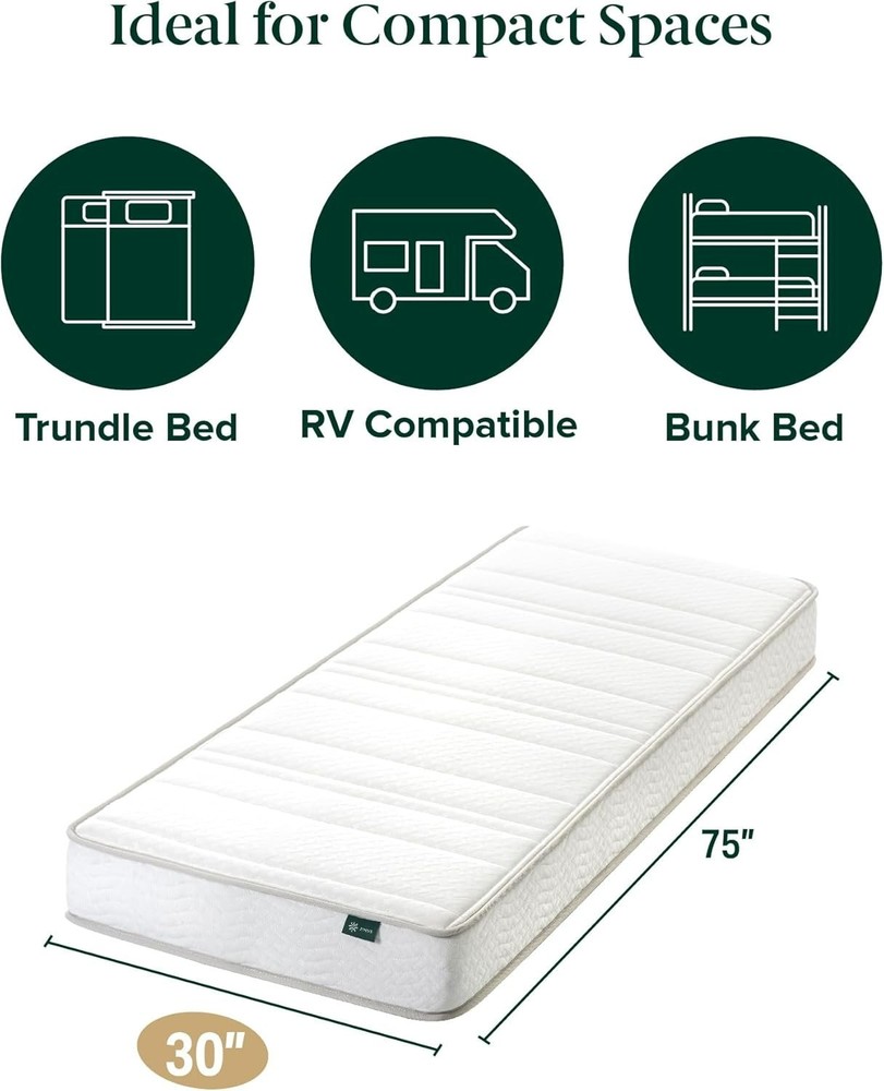 30” Wide x 75” Long Foam & Spring Hybrid Mattress – CertiPUR Certified Comfort ‹ › ‹ › ‹ › ‹ › ‹ › ‹ › ‹ › ‹ › ‹ › ‹ › ‹ › ‹ › 30” Wide x 75” Long Foam & Spring Hybrid Mattress – CertiPUR Certified Comfort Features: Compact size: 75”x30”, 8 inches narrower than a regular twin, perfect for tight spaces like bunks, trundles, day beds, and RVs. Traditional support reimagined: Hybrid design provides even support night after night. Eco-friendly packaging: Arrives in a smaller box, reducing its carbon footprint. Reliable support: Heavy-gauge steel coils are interconnected, ensuring consistent, durable support from head to toe. Built to last: Supports up to 250 lbs for twin sizes and 500 lbs for other sizes. Safe materials: Made from CertiPUR-US certified foam and OEKO-TEX certified mattress cover, free of harmful chemicals. Benefits: Perfect for smaller living arrangements while providing superb comfort and support. Eco-conscious design helps protect our planet. Enjoy the durability and consistent support of interconnected steel coils. Sleep peacefully knowing you’re resting on high-quality, safe materials. Comes with a 10- limited for added peace of mind. Why choose our Hybrid Mattress? Experience a restful night's slumber with our uniquely designed 30” x 75” Foam & Spring Hybrid Mattress. Perfectly engineered to blend the durability of steel coils with the comforting embrace of high-quality foam layers, this mattress offers a harmonious balance of support and softness. Enjoy the peace of mind that comes from sleeping on CertiPUR-US certified materials, knowing that your health and comfort are our utmost priority. Each mattress comes neatly compressed and conveniently packed in a box, making setup a breeze. Redefine your sleep experience with our thoughtfully crafted hybrid mattress—where comfort, quality, and a commitment to the environment coalesce. Elevate your rest today by choosing a mattress that not only supports your body but also contributes to a healthier planet. Shipping Free & Fast Shipping - We offer free shipping to most of the USA with a normal delivery time of 3-7 days. However, due to the current situation, additional delivery time (up to 3 weeks) may be required for some items. Alternative Carriers - We may use alternative carriers (e.g. USPS, FedEx, UPS, etc.) to ensure your package arrives safely and on time. Due to the use of multiple carriers, we are unable to provide a tracking number automatically. Handling Time - Orders are processed and shipped within 1-2 business days of receiving cleared payment. Shipping Restrictions - Shipping to Alaska, Hawaii, Puerto Rico, Guam, and other US territories may incur shipping charges or delivery restrictions. Please contact us before ordering, or your order can be refunded/cancelled. State Restrictions - There may be restrictions based on your state of purchase. For example, certain items may not be shipped to California due to state regulations. Contact for Tracking Updates - If you require tracking updates or have any concerns about the delivery of your order, please feel free to contact us, and we will be happy to assist you. Return 30-Day Hassle-Free Returns - We want you to be completely satisfied with your purchase. If you are not, you can return the item within 30 days of receiving it for a full refund or exchange. Easy Return Process - To start a return, simply contact us and we will provide you with a prepaid return shipping label and detailed instructions. Restocking Fee - There are no restocking fees for returns. However, the buyer is responsible for return shipping costs if the return is not due to a seller's error. Refund Processing Time - Refunds will be processed within 5 business days of receiving the returned item in its condition. Payment We accept all major credit cards, PayPal, and Apple Pay for your convenience. Your payment information is secure and encrypted to ensure a safe and seamless transaction. Please complete your payment within 3 days of purchase to avoid any delays in shipping. Feedback Your feedback is extremely important to us. We strive to provide the best products and customer service possible. If you are satisfied with your purchase, please take a moment to leave us a positive review. If you have any concerns or issues with your order, please contact us before leaving negative feedback. We are committed to resolving any problems and ensuring your satisfaction. Contact Us If you have any questions or concerns, please feel free to out to our customer support team. You can contact us through the eBay messaging system. We are available Monday to Friday, 9:00 am to 5:00 pm EST, and we will do our best to respond to your inquiry within 24 hours. Buy it now and enjoy a pleasant shopping experience! Unit Quantity: 22.7 lb Features: CertiPUR-US Certified,Compact Design,Environmental Friendly,Even Support,Interconnected Coils,Durable Design,Compact,Durable,Comfortable,Supportive,Safe Materials,Environmentally Friendly,Tight Top,Hybrid Technology,Bunk Bed Compatible,Trundle Compatible,RV Compatible Cover Material: Polyester Labels & Certifications: Twin Mattress Firmness: Medium Size: Twin Type: Hybrid Mattress Color: White Thickness: 6 in Mattress Breathability: Medium Style: Contemporary/Modern Room: Bedroom Shape: Rectangle Pattern: New Small Box Number of Springs: 700 Item Weight: 22.7 lb Care Instructions: Do Not Bleach
