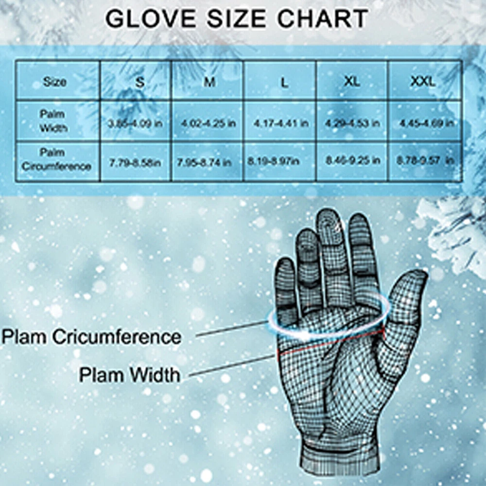 Features: √ [Warmth and Comfort] The outer layer is made of lycra fabric, which has good windproof and waterproof properties, making it especially suitable for use in cold winters. The inner layer is made of thick polar fleece, which provides excellent warmth. However, the wearer will not feel overly hot because our gloves have good breathability, keeping the hands at a comfortable temperature. √ [High Sensitivity Touchscreen] The thumb, index finger, and middle finger are coated with touch-conductive material, allowing you to efficiently use your phone and touchscreen devices without taking off the gloves. √ [Upgraded Water Resistant Zipper] The waterproof and fashionable adjustable zipper adds texture, style, and durability, making it easier for you to wear and take off these gloves. √ [Water Resistant and Windproof] Our winter gloves are made with three layers of insulation fabric, which offers windproof, warmth, and breathability. The water-resistant design ensures that our touchscreen gloves can work well even in rainy or extreme conditions. √ [Anti-slip Design] Both the fingers and palms are equipped with high-quality silicone, providing stronger grip and more flexibility. They are wear-resistant and prevent items from slipping, helping you maintain a firm grip on the steering wheel while driving. √ [Ergonomic Design] The finger portion is naturally curved, conforming to the natural bending characteristics of human fingers, ensuring a comfortable fit. √ [Suitable for Various Winter Activities] Perfect for cold winter leisure, skiing, cycling, driving, hiking, running, biking, snow, landscaping, DIY projects, cross-country skiing, snowmobiling, and other winter outdoor activities. Package Contents: 1 pair of motorcycle gloves (M/L/XL) Additional Information: - Material: Lycra fabric, polar fleece, touch-conductive material - Size options: M, L, XL - To determine your glove size, measure the circumference of your hand at its widest point. - Hand wash recommended. Do not tumble dry. - Please allow a slight measurement deviation due to manual measurement. - Colors may vary slightly due to screen resolution. On Nov 25, 2024 at 00:52:56 PST, seller added the following information: