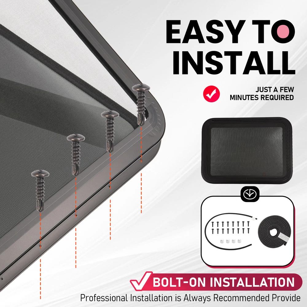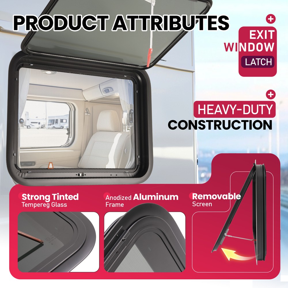 30" x 22" Exit RV Window W/ Removable Screen Trim Ring Dark For Camper Trailer FIT FOR: Universal Such as Camper, RV, Motorhome, Trailer Specification: Condition: 100% Brand New Frame Color: Black Glass Color: Dark MeshScreen: Black Material: Aluminium+Tempered Glass+Plastic(PP) Surface Finish:Powder Coated Features: Anti-mosquito and Breathable:This RV window is equipped with a screen window, and the holes of the screen window are very fine. This screen prevents mosquitoes from flying in when you want to open the window for ventilation. High Privacy:This window is made of tempered black glass. After installation, the environment inside the RV cannot be clearly seen from the outside, so your privacy can be well protected when you are resting. Sturdy and Durable:The windows are made of high-quality steel, which has high strength and is very strong. Simply used:Window opens simply by one lever, and pushes outwards for easy Exit if needed! Package Includes: 1 X RV Window as shown Shipping: All items will be shipped out in 1 business day, no expedited service available. We ship our items to USA only(Does NOT include Hawaii, Alaska or Puerto Rico, PO Boxes/APO's). Shipping Notes: We use multiple warehouses and will select the nearest warehouse for delivery according to your order address and our inventory, Thank you for your cooperation. Contact us: Any Questions, Just feel free to contact us on eBay. We will reply you in 24 hours. On Apr 3, 2025 at 05:08:47 PDT, seller added the following information: On Apr 22, 2025 at 19:38:12 PDT, seller added the following information: On Apr 22, 2025 at 22:15:28 PDT, seller added the following information: