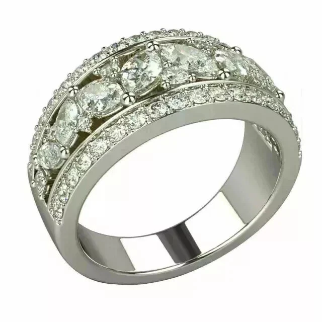 3.00 Ct Marquise Cut Moissanite Men's Wedding Band Ring 14K White Gold Plated Customization: Want to add your personal touch to this piece? Contact us and we will create one just for you. Most customization requests include: 1) Ring Resizing 2) Redesign 3) Metal Change (Silver/10K Gold / 14K Gold /18K Gold) 4) Metal Color Change (White/Yellow/Rose/Black) 5) Color Stones (White Topaz, Pink Sapphire, etc) 6) Engraving (Name or any message - no of characters subject to size of jewelry) 7) Anything under the sun that catches your fancy, we will give it a try :) Payment: We accept payment via PayPal only. You can also pay using your credit card, via paypal, by using paypal as a guest. Payment is required within 3 days of the sale of an item. Shipping: International shipments are usually delivered within 2 to 6 weeks, depending on the time taken to clear customs. We are not responsible for any delays due to customs. Please note that all countries charge a duty on imported goods. A customs clearing charge is also imposed in many countries. We are not responsible for the amount of duty or any other related charges. Terms & Sale: We want to ensure that you are completely satisfied with your purchase. If not, then please let us know before leaving any feedback and allow us to work with you to completely resolve any issues that you might be facing. You can return the item for a full refund LESS shipping, within 14 days of item(s) receipt date. There is no restocking fee. 100% Satisfaction Guaranteed. All returns must reach us within 14 days after the item was delivered to you the item must be in the original condition and with the original tags attached. Contact Us: You can contact us by clicking on 'ask seller a question'