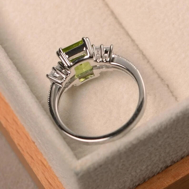 2.19 Ct Natural Peridot & Diamond Valentine's Day Ring 14K Real White Gold solid
