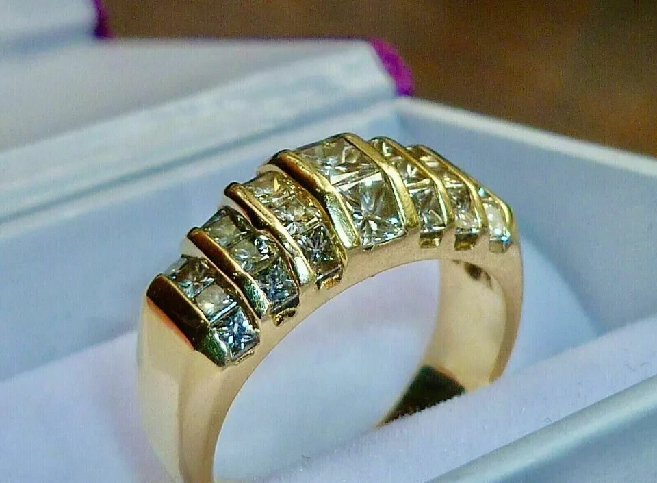 3.00 Ct Princess Cut Moissanite Engagement Wedding Ring 14K Yellow Gold Plated Customization: Want to add your personal touch to this piece? Contact us and we will create one just for you. Most customization requests include: 1) Ring Resizing 2) Redesign 3) Metal Change (Silver/10K Gold / 14K Gold /18K Gold) 4) Metal Color Change (White/Yellow/Rose/Black) 5) Color Stones (White Topaz, Pink Sapphire, etc) 6) Engraving (Name or any message - no of characters subject to size of jewelry) 7) Anything under the sun that catches your fancy, we will give it a try :) Payment: We accept payment via PayPal only. You can also pay using your credit card, via paypal, by using paypal as a guest. Payment is required within 3 days of the sale of an item. Shipping: International shipments are usually delivered within 2 to 6 weeks, depending on the time taken to clear customs. We are not responsible for any delays due to customs. Please note that all countries charge a duty on imported goods. A customs clearing charge is also imposed in many countries. We are not responsible for the amount of duty or any other related charges. Terms & Sale: We want to ensure that you are completely satisfied with your purchase. If not, then please let us know before leaving any feedback and allow us to work with you to completely resolve any issues that you might be facing. You can return the item for a full refund LESS shipping, within 14 days of item(s) receipt date. There is no restocking fee. 100% Satisfaction Guaranteed. All returns must reach us within 14 days after the item was delivered to you the item must be in the original condition and with the original tags attached. Contact Us: You can contact us by clicking on 'ask seller a question'