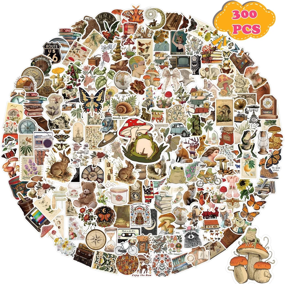 😉【What You Will Get】 Our vintage sticker set includes 300 unique and aesthetic stickers specifically designed to bring a retro and classic vibe to your creative projects. Each sticker measures approximately 2-3.5 inches and is coated with a glossy waterproof layer, ensuring durability and water resistance. We guarantee that customers will receive the exact stickers as described. ✨【Quality Guarantee】We use non-toxic vinyl materials to produce our beautiful vintage stickers. They are safe, waterproof, and durable. The high-precision printing technology ensures clear and vibrant images that won't fade easily. Each sticker is meticulously cut to match its unique shape and size. 👩🔧【Perfect DIY Decoration】You can stick these vintage stickers anywhere you desire. The cute and vibrant stickers can be used as water bottle stickers, skateboard stickers, and laptop stickers. They also serve as delicate and waterproof decorations for water bottles, such as vinyl stickers for hydroflasks, school supplies, phones, guitars, skateboards, computers, luggage, bicycles, cars, and scrapbooks. 🎉【Ideal Gift Choice】Our vinyl stickers for water bottles are carefully designed and selected. You can rest assured that our sticker pack is awesome water bottle stickers and gifts stickers for kids teens girls. Our water bottle stickers are reusable without leaving any residue after removal, which is consistent with the concept of environmental protection. 💓【Satisfied After-sale Services】 The satisfaction of customers is our drive of progress. Please feel free to contact us if you are not satisfied with our cute stickers for water bottles or have any questions about our vinyl stickers for water bottles. We will do our best to provide quality solutions. Product Description Precisely Crafted A high-precision printing technology creates a sticker pattern that is more precise, clear and perfectly cut according to the shape and size 100% Waterproof & Fade Proof Using high quality vinyl to give our modern Aesthetic stickers 100% waterproof protection and the fade proof ink will keep your trendy, chic stickers looking colorful for a lifetime. Easy To Peel And Stick These premium vinyl stickers feature a thin paper backing that can be quickly and easily removed when you're ready to apply these cute decals. Perfect For Decorating Water Bottles Cool, colorful waterproof stickers are an excellent way of adding artsy inspirational decorations to your water bottle without worrying damage from spills or leaks. Here, There & Everywhere Each sticker features a strong adhesive layer that allows them to be stuck on almost anything, including laptops, skateboards, phone, mirror, guitar, books, refrigerator and furniture. Premium Quality Decals This set of carefree, motivational stickers lets you personally embellish various crafting projects such as scrapbooks, journal, planner, notebook, diary, greeting cards, photo albums and much more by using your creativity. Why Should You Choose Vintage Stickers From BarelTree Store? 1. Vintage stickers pack,water bottle sticker pack has 300 unique stickers, all of which are beautifully designed, high quality, waterproof and sunscreen, and reusable, peel off leaving no glue. 2. The applicable range of stickers is very wide. It can be used to decorate laptops, scrapbooking, computers, water bottles, mirrors, notebooks, diaries, suitcases, skateboards, snowboards, bicycles, cars and anything you want to decorate. 3. Vintage stickers for ideal gifts for kids, girls, teens and adults. In festivals, birthday gifts, Valentine's Day gifts, Halloween gifts, Children's Day gifts, etc... THANK YOU For Coming To Our Store...We Hope To Bring You Satisfaction...!