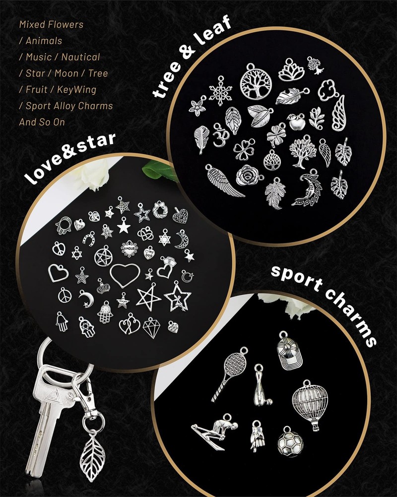 300 PCS Wholesale Bulk Lots Jewelry Making Charms Mixed Smooth Tibetan Silver