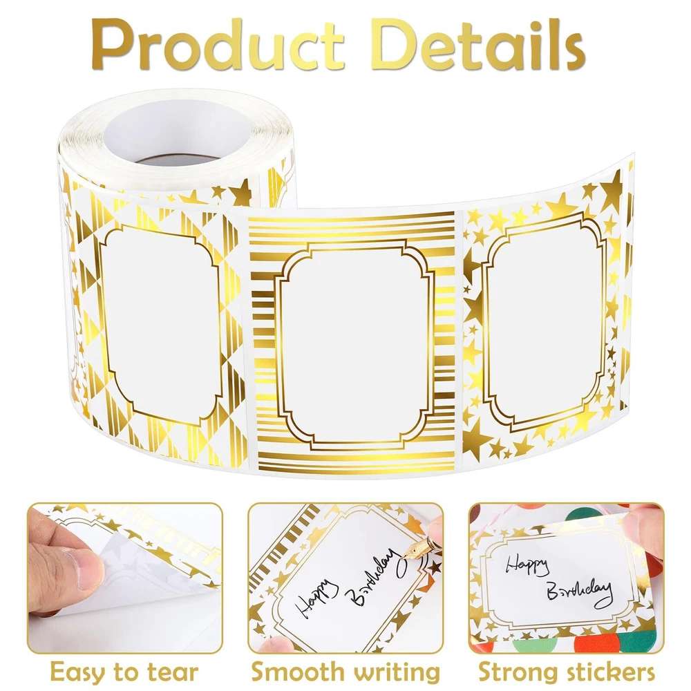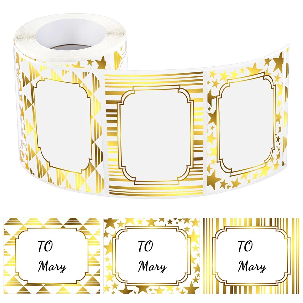 Specifications: Material:vinyl Size:7.62 x 5.08 cm/3 x 2 inches Color: Gold Quantity:300 Labels/1 Roll Features: 1. 300 Pcs 3 different shape gift lable tags to meet your gift decoration needs, enough for custom personalized stickers. 2.The gold name tags are made of durable vinyl material, easy to peel and stick, suitable for most smooth and clean surfaces. 3.The blank label stickers can not only be used for customized personalized stickers, used on gift packaging. but also name tags, classification labels, inventory labels. Note:There may be a manual measurement error of 1-2cm. Due to different display screens, there may be a little color difference. Package includes: You will receive 1 roll of 300 Christmas gift tags stickers, 3 shapes, 100 sheets each, size 7.62 x 5.08 cm/3 x 2 inches, various styles for you to choose, enough for custom personalized stickers. Personalized Design: These name lables are designed with hot stamping process and exquisite frame, golden pattern design, and the blank space for you to write or draw some sentences and patterns, which makes them look very elegant and generous. Self-adhesive Labels: These self-adhesive lable stickers are made of durable vinyl material, easy to peel and stick, good adhesion, not easy to fall or fade, can be used for a long time. Easy to use: These Xmas label stickers are easy to apply and peel off, suitable for most smooth and clean surfaces, such as books, cartons, acrylic, clothes and more. Exquisite gift stickers:These gift tags are beautiful and elegant in appearance, suitable for birthday parties, weddings, Halloween, Thanksgiving, Christmas, etc., to express your sincere wishes to your friends.