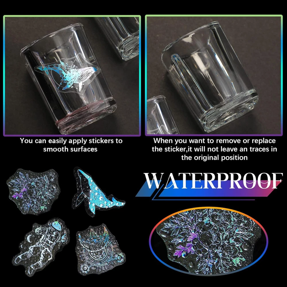 Indoor/Outdoor Usage: Indoor Recommended Uses For Product: Water Bottle, Scrapbook, Gift Wrapping, Home Decor, DIY Projects, Item model number: CG-Scrapbook -3263 Reusability: Single Use Surface Recommendation Plastic, Wood, Glass: Material Polyethylene Terephthalate Age Range (Description): Kid Target Audience: Children Number of Items: 6 Item dimensions L x W x H: 1.6 x 1.2 inches Cartoon Character: Butterfly Theme: Space, Botanical Brand: Does not apply UPC: 7445016176111 Finish Type: Shiny Animal theme: Butterfly, Whale Type: Does not apply Shape Irregular: Unit Count 1.0 Count Embellishment: Holographic stickers with various patterns Color: Holographic, Gold Water Resistance Level: Waterproof Special Feature: Waterproof Country of Origin: China Item Form: Sheet Number of Pieces: 300 Style: Custom gtin13: 7445016176111 Item Weight: 1.76 ounces Pattern: Animal, Floral, Letter and Star