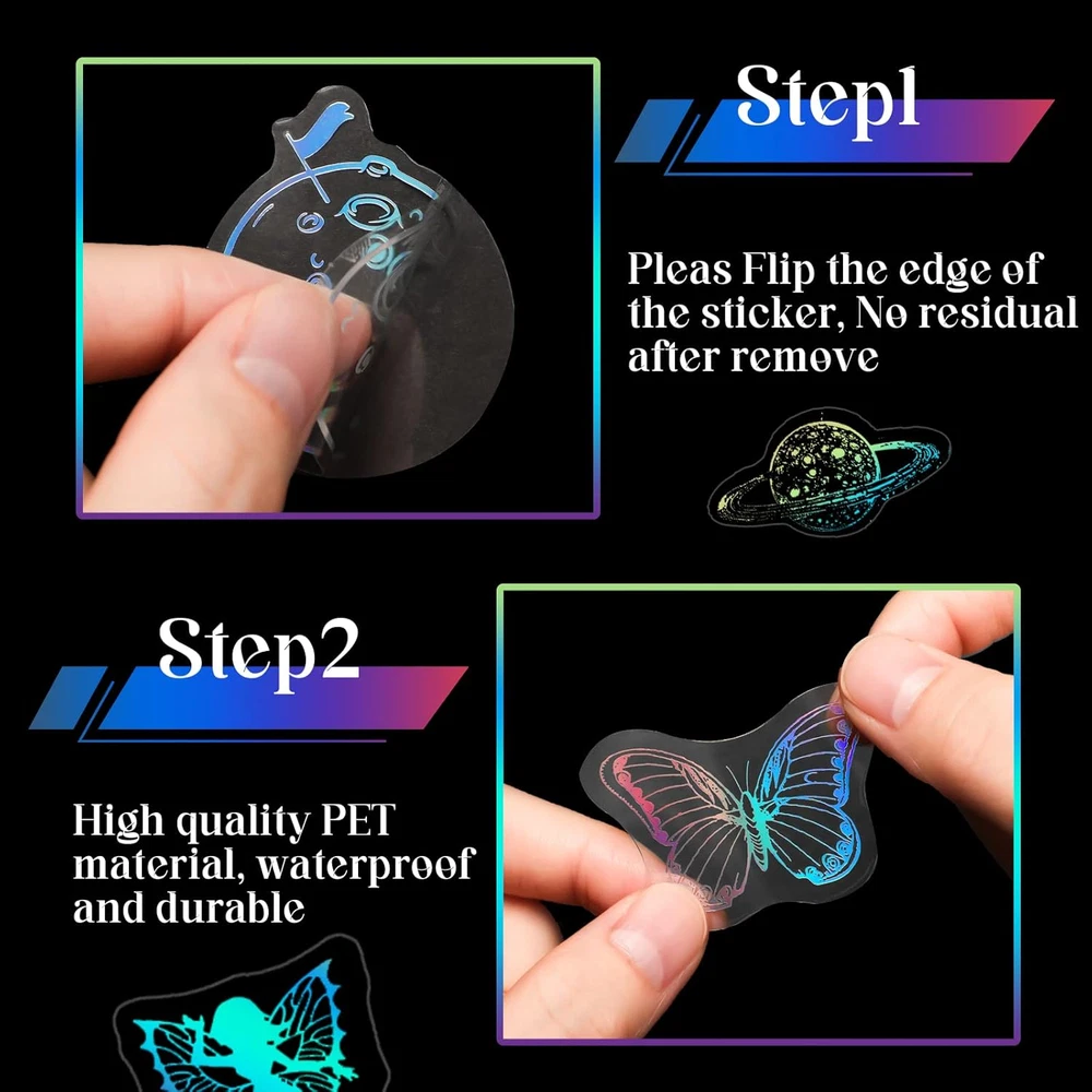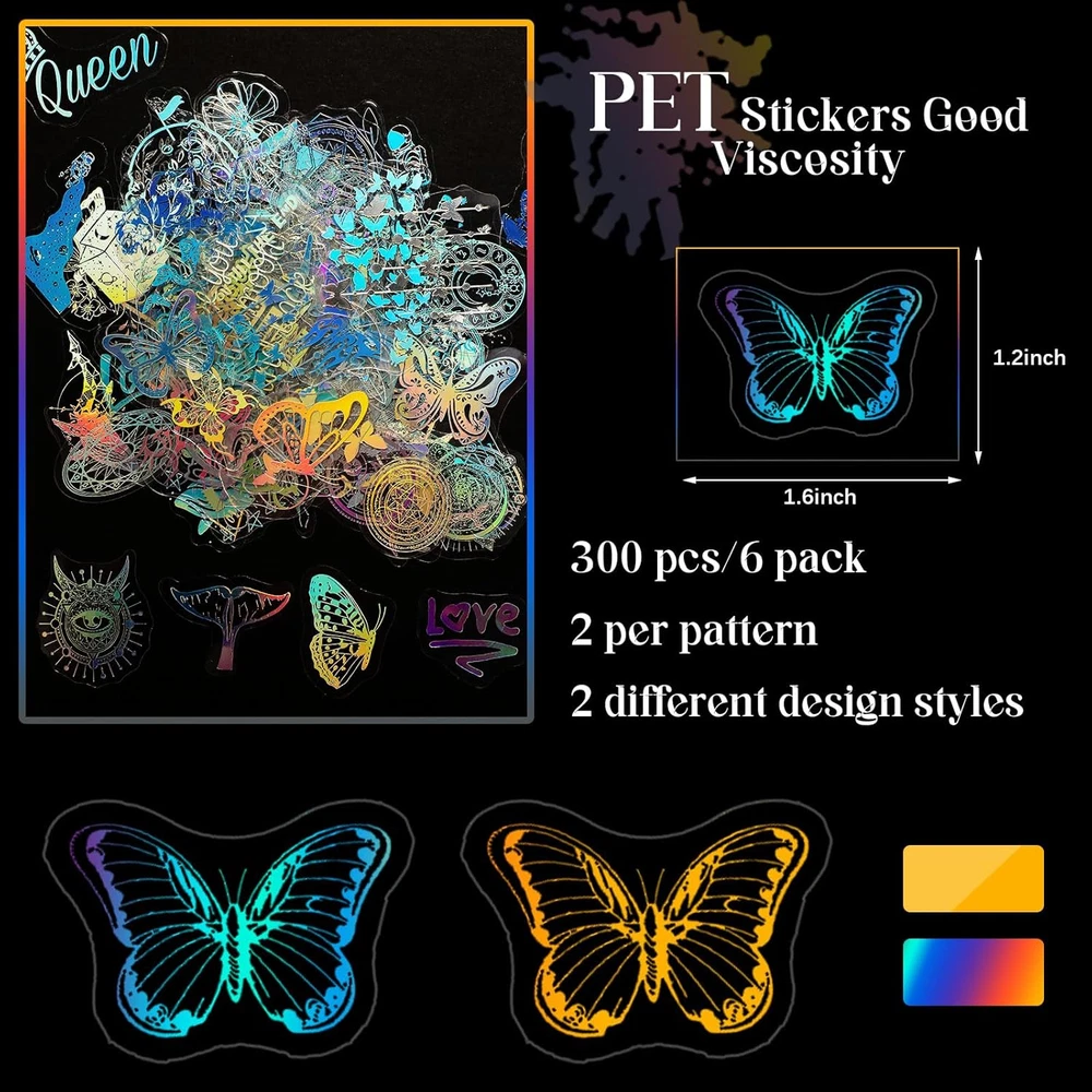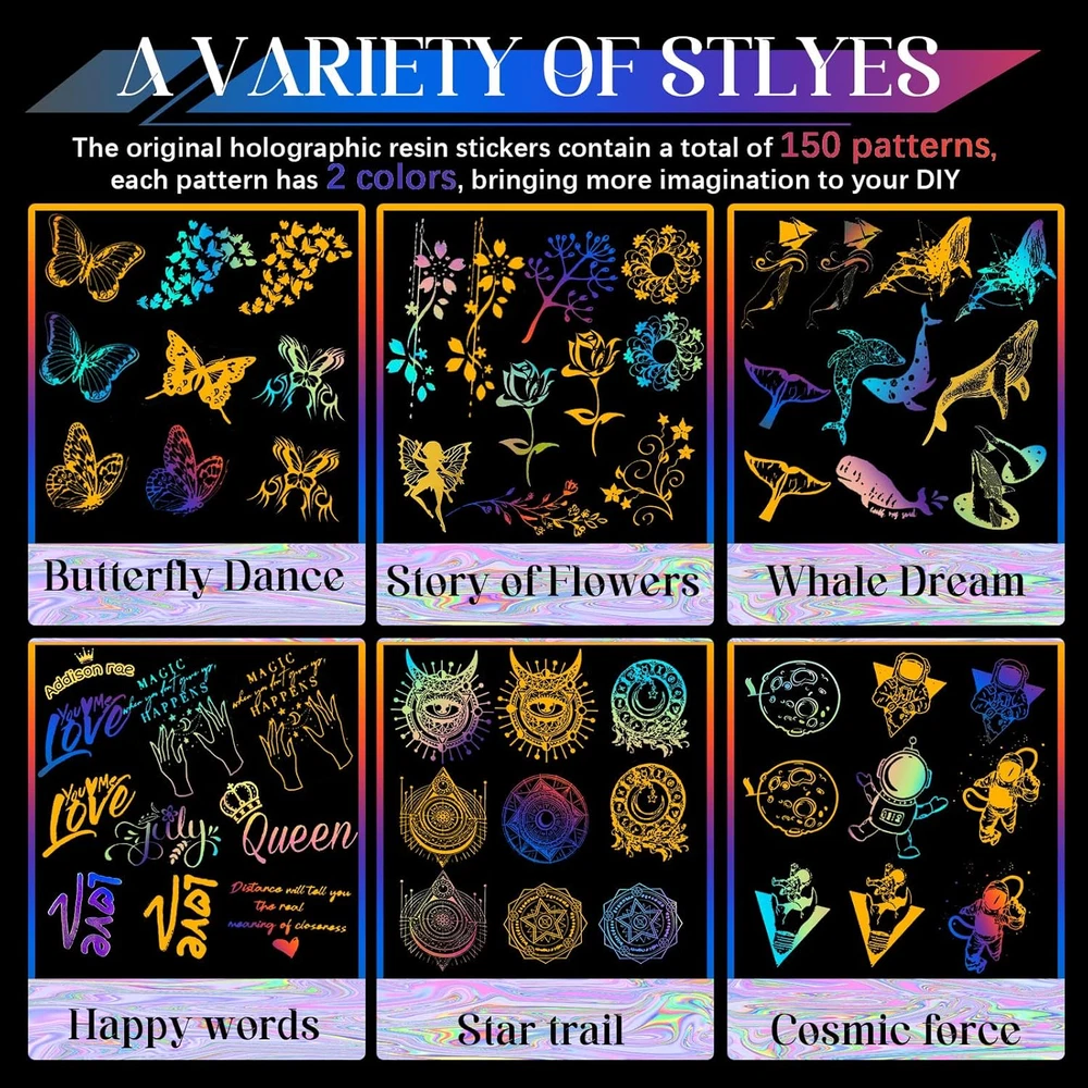 300 Pcs Shiny Holographic Stickers for Resin Transparent Stickers Glitter Resin