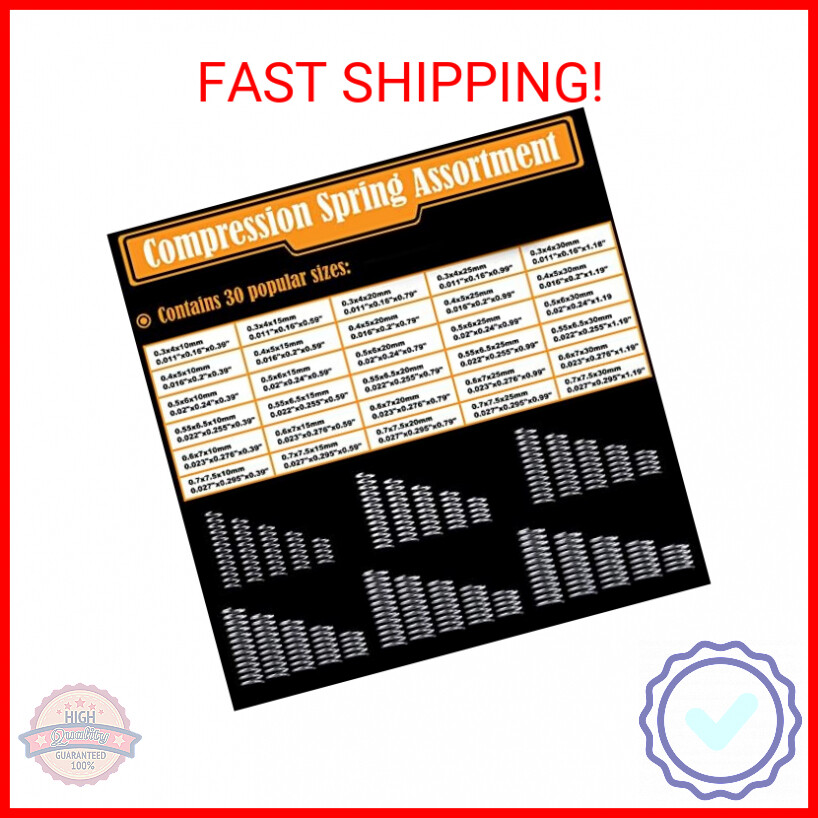100% Genuine Free Shipping Gift Cards WELCOME TO THE SHOP 300 Pcs Compression Springs Assortment Kit, Stainless Steel Springs, Spring Assortment for Shop and Home Repairs, 30 Different Sizes with Individual Bags - 【30 Different Sizes, 300 Pieces Spring Assortment Kit】Our spring assortment kit includes 30 different sizes, each sizes has 10Pcs, and total 300pcs in box. - 【Premium Compression Spring】 Smooth and no stab, good fatigue strength, high ductility. Spring coils are both durable and flexible for the right amount of tension. - 【Each Sizes Spring Steel Come with Individual Package】Size :【A×B×C】A is Wire diameter, B is Outer diameter, C is Free length: 【0.011"x0.16"x0.39"】;【0.011"x0.16"x0.59"】;【0.011"x0.16"x0.79"】;【0.011"x0.16"x0.99"】;【0.011"x0.16"x1.18"】; 【0.016"x0.20"x0.39"】;【0.016"x0.20"x0.59"】;【0.016"x0.20"x0.79"】;【0.016"x0.02"x0.99"】;【0.016"x0.20"x1.19"】; 【0.020"x0.24"x0.39"】;【0.020"x0.24"x0.59"】;【0.020"x0.24"x0.79"】;【0.020"x0.24"x0.99"】;【0.020"x0.24"x1.19"】; - 【0.022"x0.255"x0.39"】;【0.022"x0.255"x0.59"】;【0.022"x0.255"x0.79"】;【0.022"x0.255"x0.99"】;【0.022"x0.255"x1.19"】; 【0.023"x0.276"x0.39"】;【0.023"x0.276"x0.59"】;【0.023"x0.276"x0.79"】;【0.023"x0.276"x0.99"】;【0.023"x0.276"x1.19"】; 【0.027"x0.295"x0.39"】;【0.027"x0.295"x0.59"】;【0.027"x0.295"x0.79"】;【0.027"x0.295"x0.99"】;【0.027"x0.295"x1.19"】; 【Fit Most Use Spring Set】Spring kit has 30 different Kinds of size springs which you may choose for home repairs. - 【Easy to Storage Mechanical Compression Springs】 All the compression springs are neatly packed in individual Package with corresponding size label, you could pick up the suitable one quickly. Payments We accept the following payment methods PayPal Please pay as soon as possible after winning an auction, this will allow for quicker shipping times! Returns We accept returns. You can return unopened items in the original packaging within 30 days of your purchase with receipt or proof of purchase. If 30 days or more have passed since your purchase, we cannot offer you a refund or an exchange. Upon receipt of the returned item, we will fully examine it and notify you via email, within a reasonable period of time, whether you are entitled to a return. If you are entitled to a return, we will refund your purchase price and a credit will automatically be applied to your original method of payment. Only regular priced items may be refunded. Sale items are non-refundable. Shipping Shipment processing time All orders are processed within 2-3 business days. Orders are not shipped or delivered on weekends or holidays. If we are experiencing a high volume of orders, shipments may be delayed by a few days. Please allow additional days in transit for delivery. If there will be a significant delay in shipment of your order, we will contact you via email or telephone. Shipping rates & delivery estimates Shipping charges for your order will be calculated and displayed at checkout.